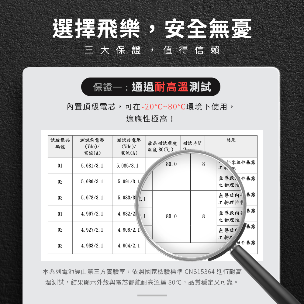 ●通過國家檢驗標準CNS15364測試,可耐80℃高溫