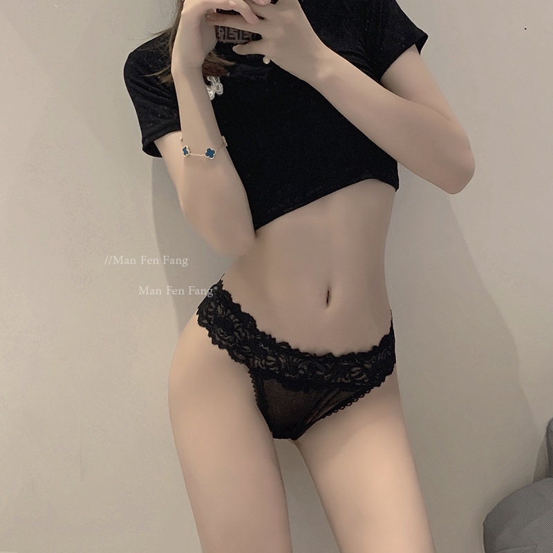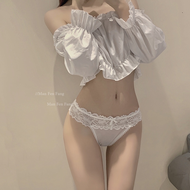 48辣個眼睛-兔管家*日系可愛兔尾巴性感蕾絲內褲女低腰蕾絲無痕三角丁字t