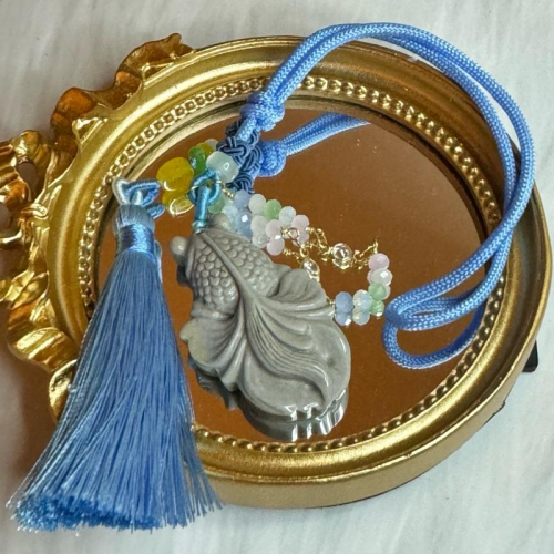 • 【現貨】海洋石(海洋碧玉)金魚手把件