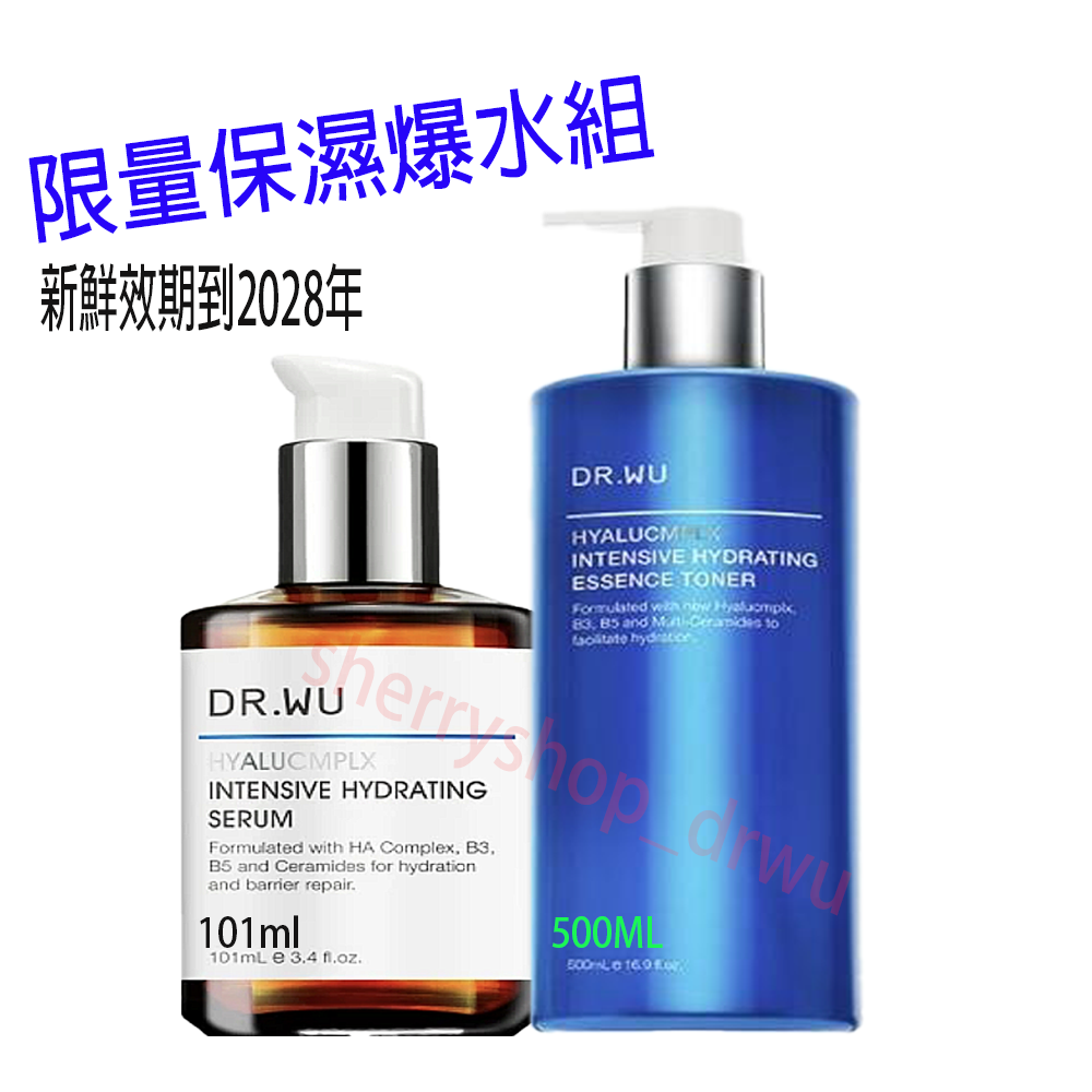 DR.WU玻尿酸保濕爆水組(DR.WU玻尿酸保濕精華液重量版101ml+化妝水重量版500ml)全新組合拆售裸瓶無盒