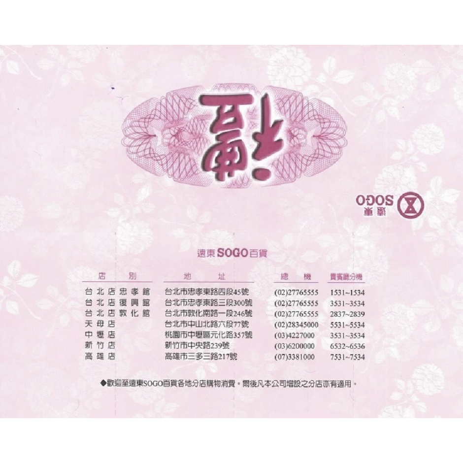 95折1000面額‼️全省SOGO商品卷 sogo禮券 實體禮券