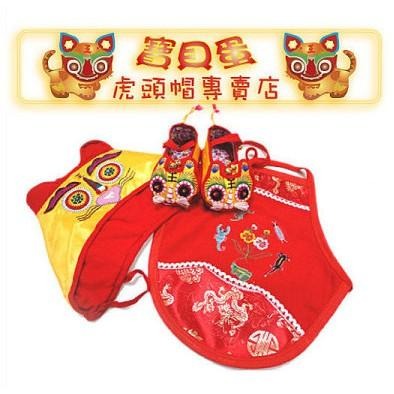 周歲套裝(五毒套裝)又稱抓周裝、滿周歲(度晬)裝,五毒系列套裝為中國民間傳統手工刺繡藝術的代表作之一,以抽象的藝術方式表現,為追求造型的完美,通過複雜的工藝粘貼、針縫、刺繡、打籽、拔花等多種手法,製作出的老虎帽不但像徵著吉祥如意驅邪避災,而且把母愛深深的凝聚在裡面,使它既有實用價值又有藝術收藏價值! 五毒系列套裝源遠流長已有六七百年的歷史,傳說中的“五毒”是五種動物.它們分別是青蛇、蜈蚣、蝎子、壁虎和蟾蜍。人們根據民間故事.興起製作五毒繡品.意為辟邪保佑老人孩童安康.民間又在衣飾上繡製五毒.在餅上綴五毒圖案.均含驅除之意。有的地方的人們用彩色紙把五毒剪成圖像(即剪紙).或貼在門、窗、牆、炕上.或系在兒童的手臂上.以避諸毒。並把它作為禮品贈送親友.特別是老人和孩子.以表示吉祥、和善、友愛。 虎頭帽、虎肚兜、虎頭鞋!從頭福氣到底老虎有獸王之稱,它體態健壯相貌威武,在人們心目中,是強者的表現。 嬰幼童一歲左右時,長輩們會給孩子穿虎頭賵、虎頭鞋!,人們認為虎是百獸之王,穿上虎頭鞋可辟除邪惡、保全平安,護佑孩子健康成長,戴上去鮮艷而可愛! 在《風俗通義祀典篇》有云:「虎者,陽物,百獸之長也。能執搏挫銳,噬食鬼魅。」它不但能吞食陰巧鬼魅、威懾群害,也能庇佑人神、賜福賜瑞。大大地符合了人們借物祈福的願望。 虎頭帽是一種民間刺繡手工製作的工藝用品。它源遠流長已有六七百年的歷史了。 虎者,陽物,百獸之長也,能執搏挫銳,噬食鬼魅。"這是古人筆下的老虎形象,然而在民間藝術中老虎總是給人一種憨態可掬的形象。在許多地方,人們都喜歡給小孩製作一個虎頭帽子。一頂頂各不相同的虎頭帽子,在表達人們祈求老虎保佑的同時,也更加襯托出了小孩活潑可愛虎虎有生的形象。