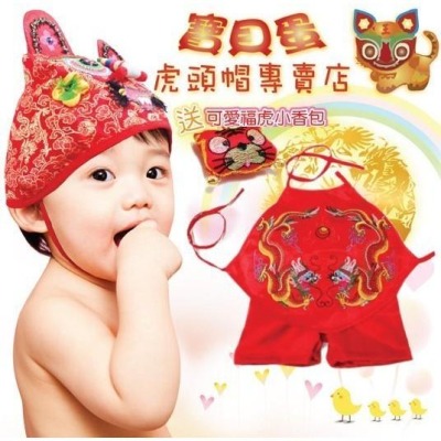 抓周 抓週 文創商品 抓周服 抓周證書下載 精緻萌虎虎頭帽+祥龍肚兜短褲 抓周用品禮品 《寶貝蛋》虎頭帽專賣店
