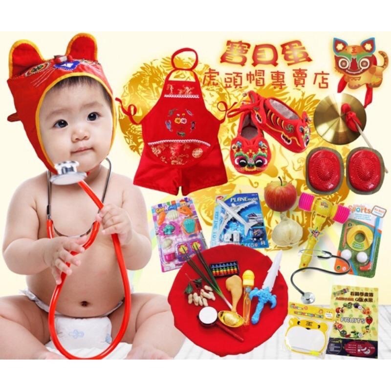 BSMI M3F375 本商品為手工訂製款服飾 超值大全組 (含全套虎帽, 肚兜, 鞋子, 派對佈置旗2組,及抓周道具18件組,及紅龜粿,及直徑10cm智慧鑼)-不含米篩。 獨家 貼心的抓周套裝組合 開心預測 小寶貝大未來