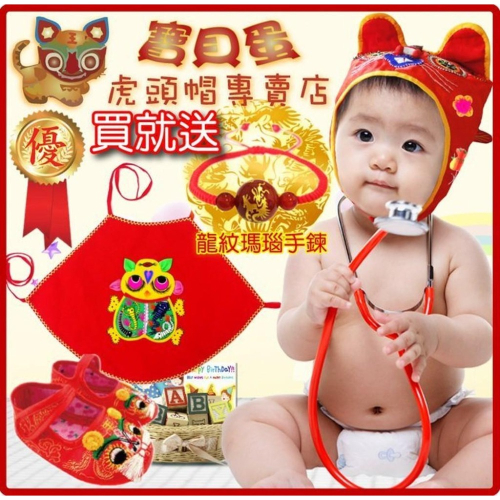 《寶貝蛋》抓周抓週服 手工刺繡品紅虎頭帽+立體五毒肚兜+19號紅虎頭鞋組合套裝送龍紋瑪瑙手鍊/滿月禮抓周套裝~抓週趣~