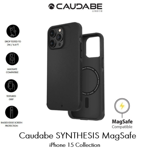 A. SYNTHESIS MagSafe保護殼由減震聚合物ShockLite™製成的柔軟邊框與堅硬、微蝕刻的啞光背蓋融為一體,高延展性邊框,永不變黃,用久不鬆弛,重量輕,超薄,防指紋,棉絮絕不沾黏。