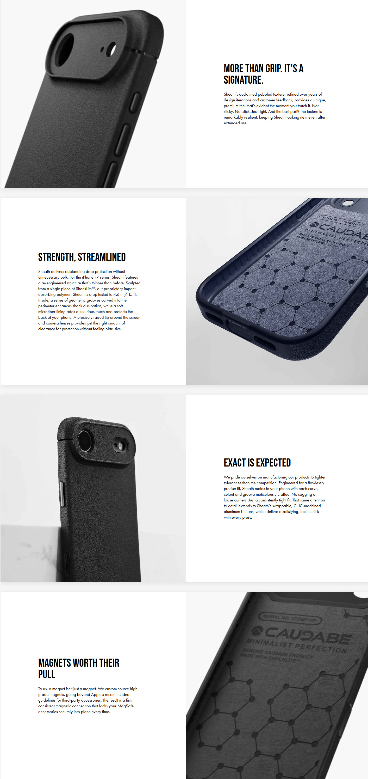 Sheath 確保每一個曲線、開孔與細節都與手機完美貼合。更確保Sheath安裝後,沒有任何鬆動或變形,呈現一致且緊密的貼合感,絕對達到嚴絲合縫的精準貼合。