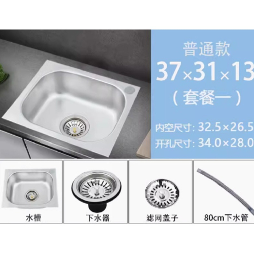 小單槽304不鏽鋼水槽廚房洗菜盆洗碗池洗手盆一體水盆套餐