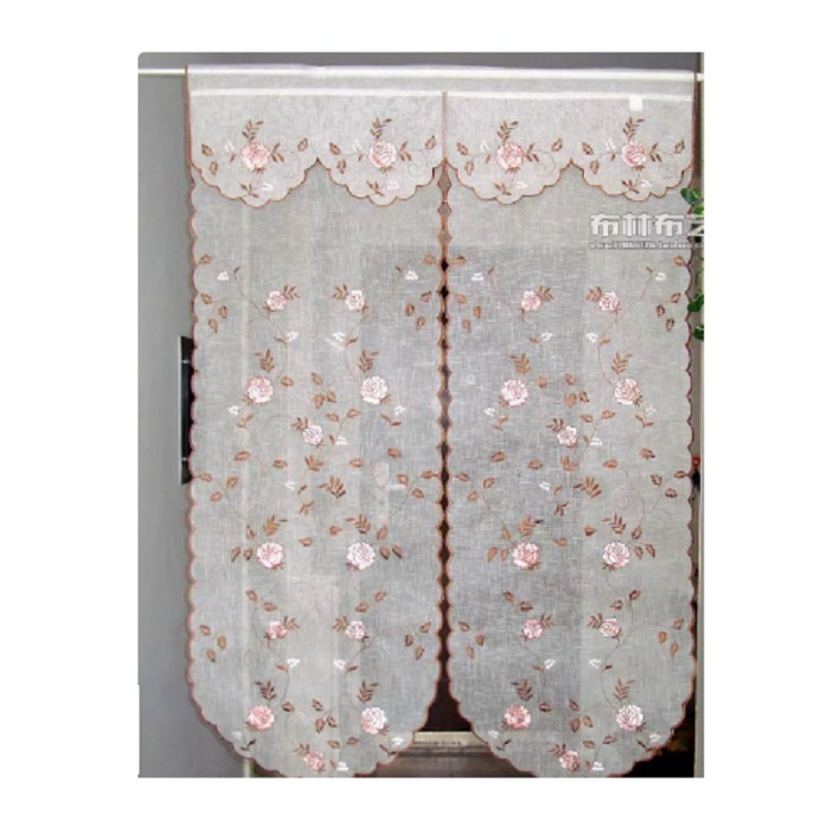 門簾日式刺繡布藝風水簾隔間簾窗簾掛簾歐式田園半簾廚房簾紗料半透明85*150CM門簾