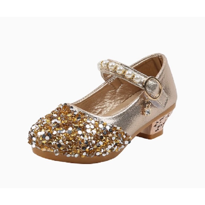 金色公主鞋走秀演出公主兒童鞋女童小高跟鞋女孩表演尺寸:35碼內長21.2cm[適合腳長20.2cm