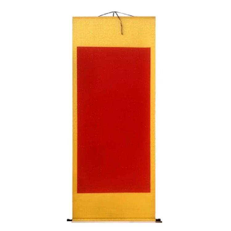 空白畫軸全綾捲軸半生熟宣紙對聯中堂配對聯明黃錦綾+大紅灑金宣紙;三尺對開立軸一個內心30*94CM