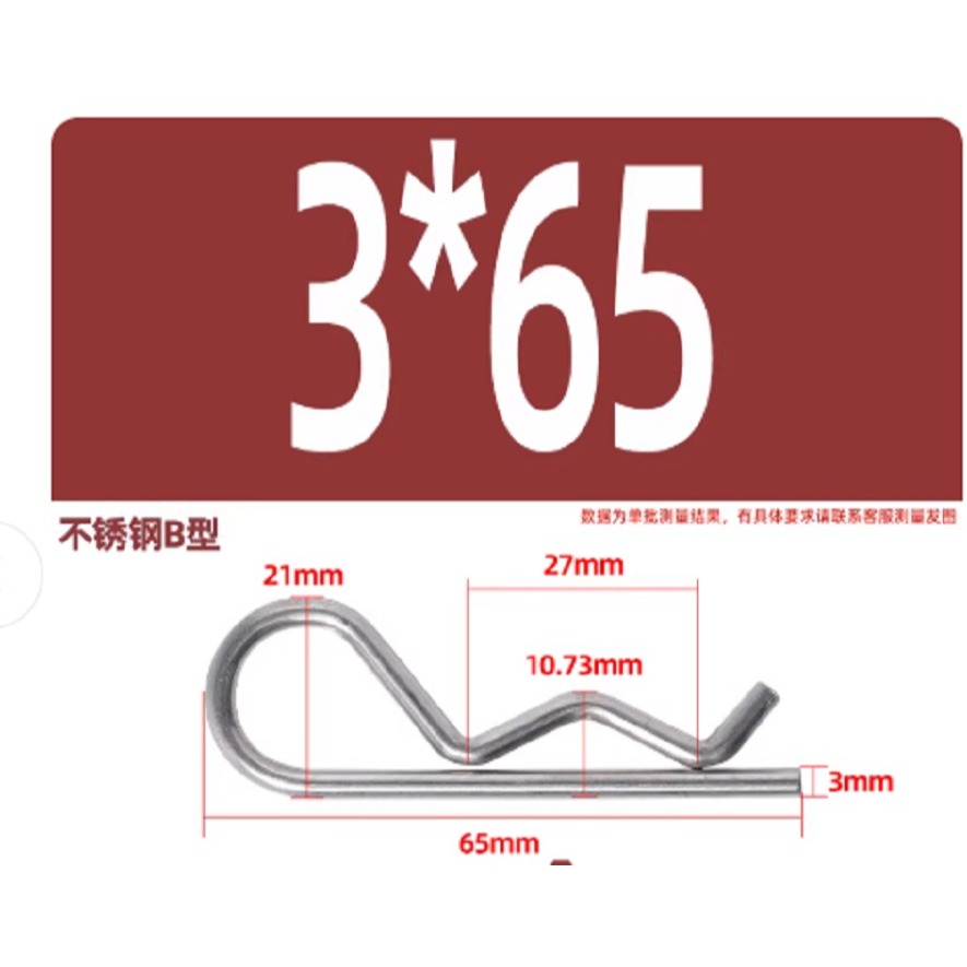 B型銷R型銷彈性開口銷不鏽鋼波浪銷R形304不鏽鋼3*65 (6個)