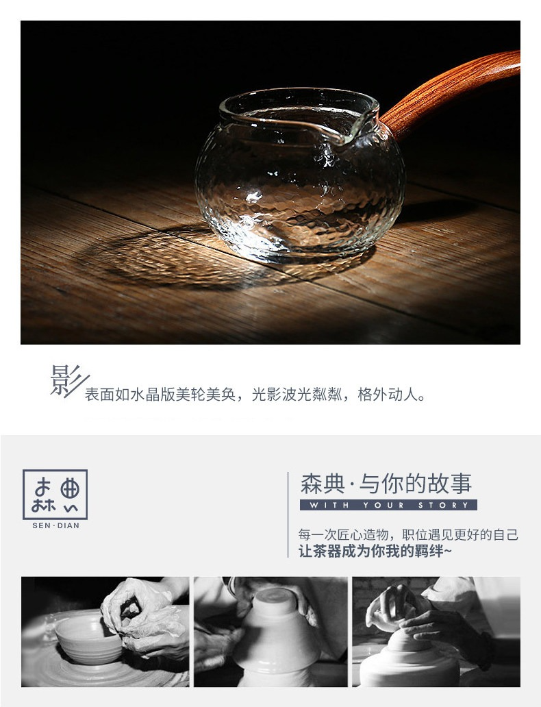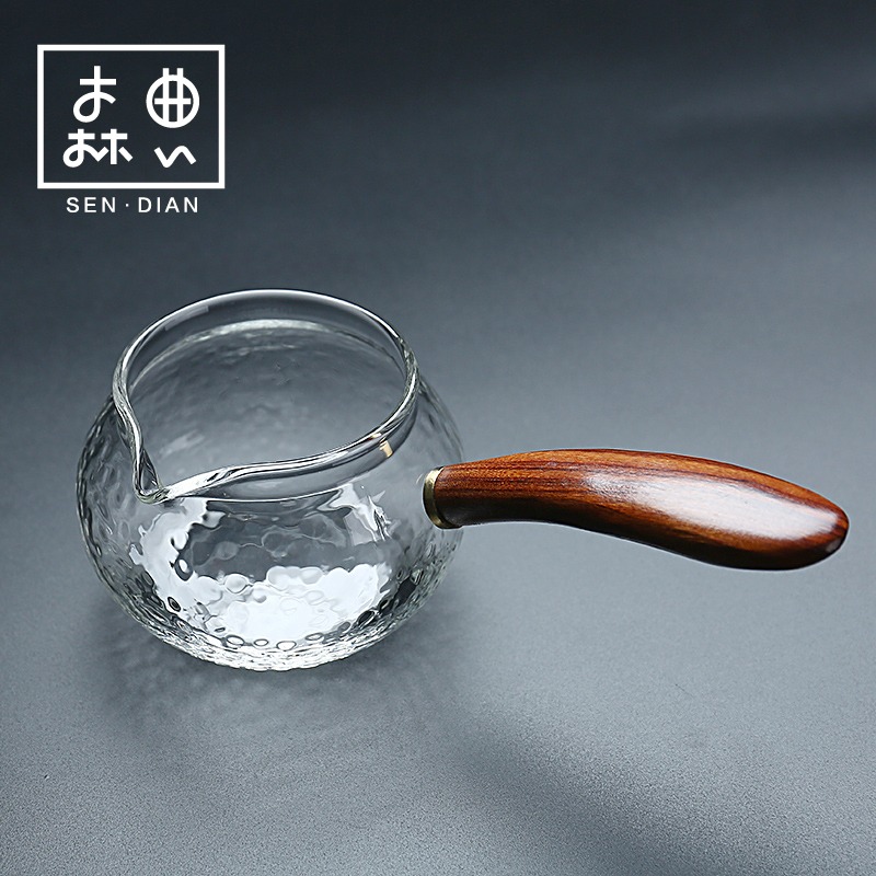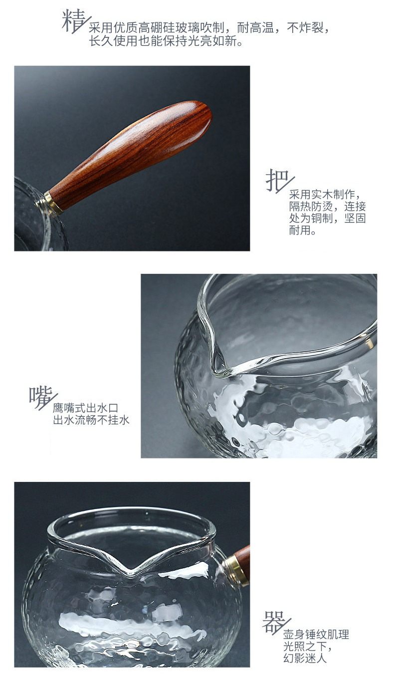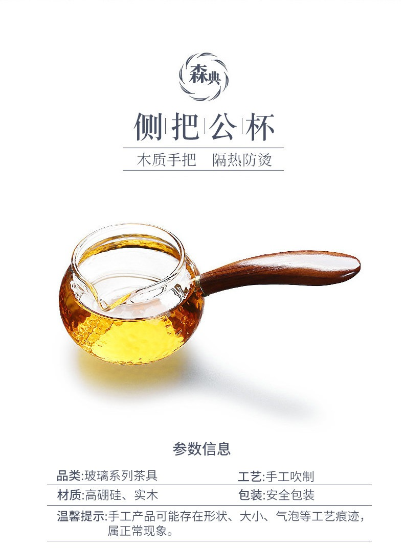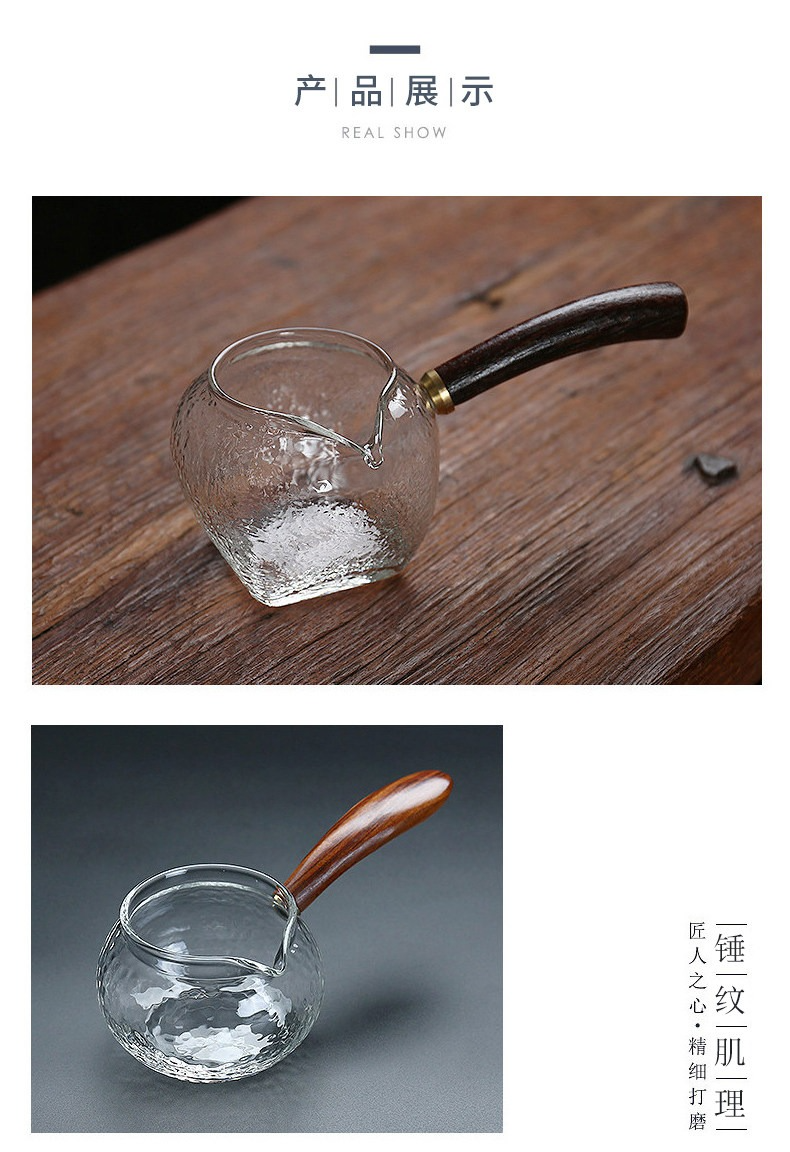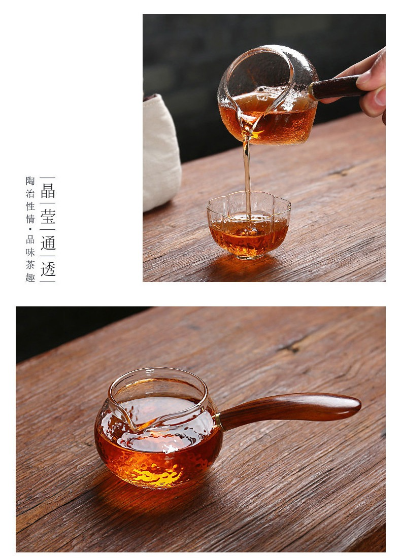 日式錘目紋公道杯耐熱玻璃側把壺加厚茶海功夫茶具分茶器茶漏套裝