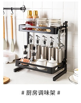 • 40cm黑色調味架雙層(帶10個掛鉤)