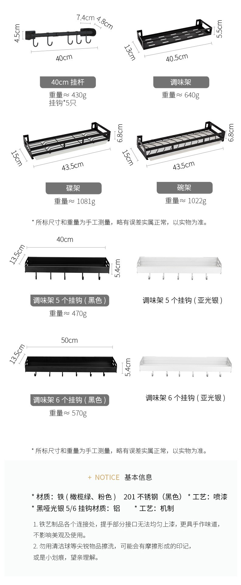 • 40cm亞光銀調味架(帶5個掛鉤)