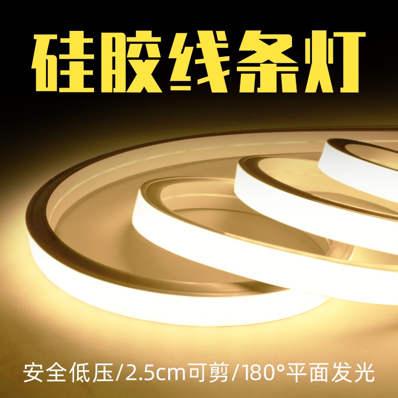 硅膠燈帶柔性led軟燈條線性鑲嵌入式裝飾展示櫃子12V平面套管自粘樓梯戶外超薄24V櫃體天際線木板帶護套室外