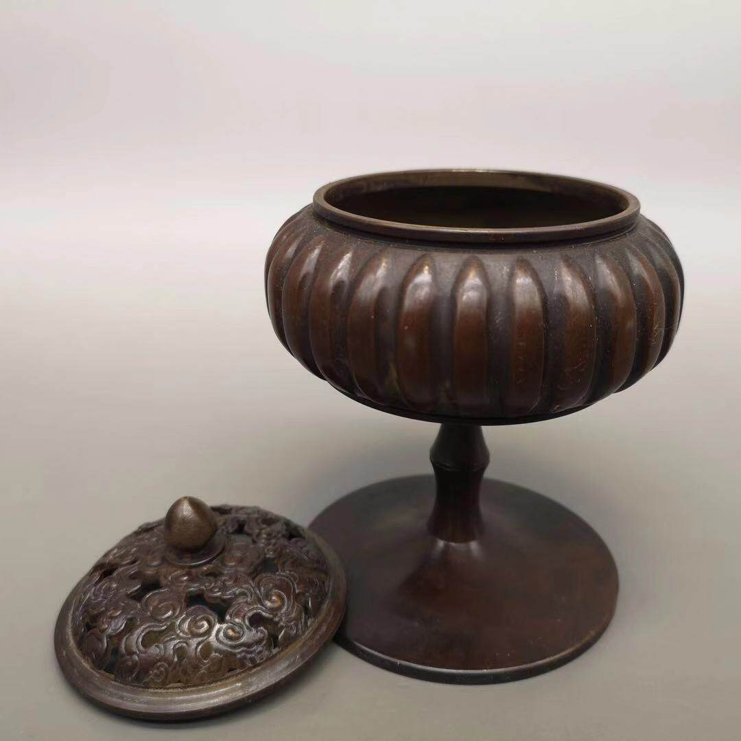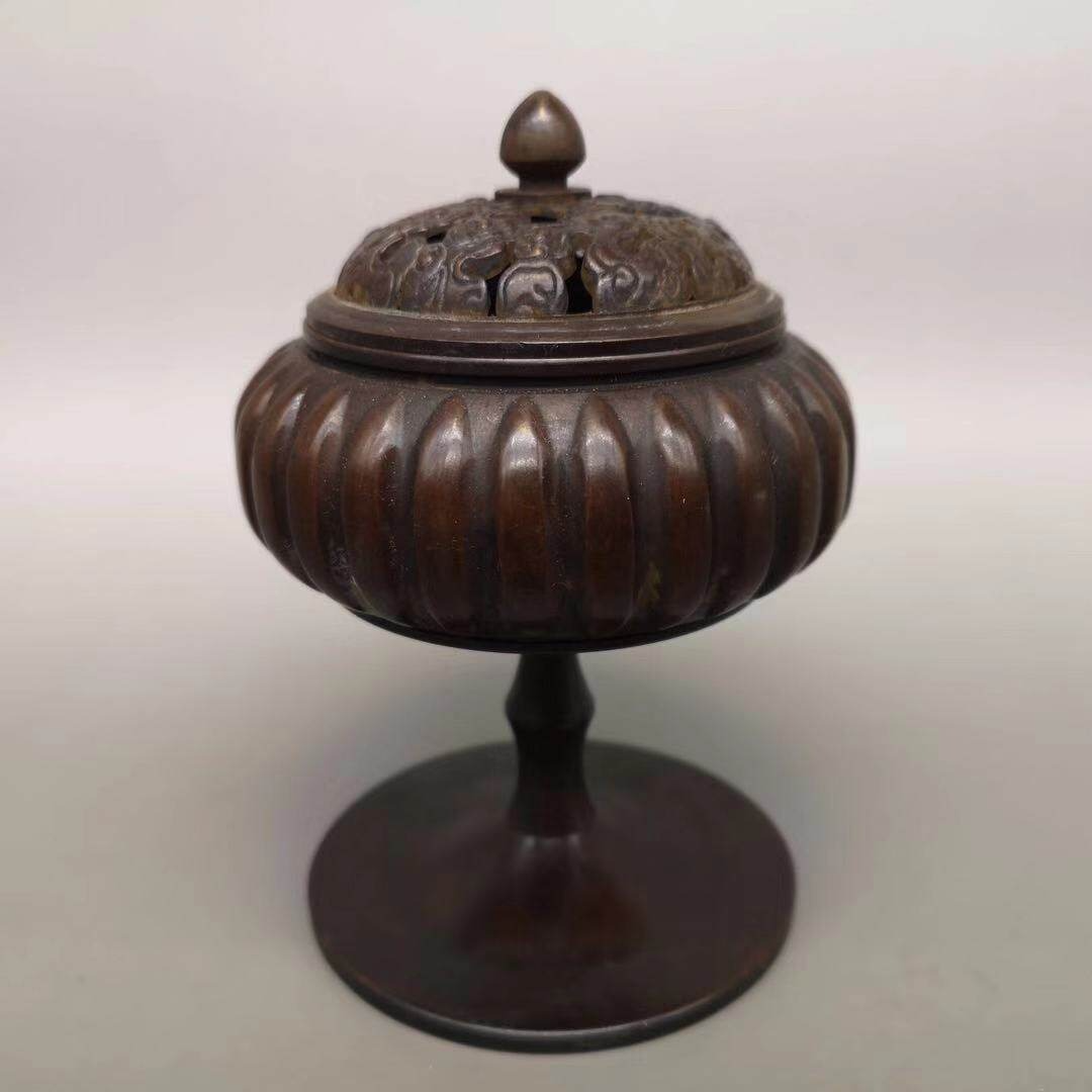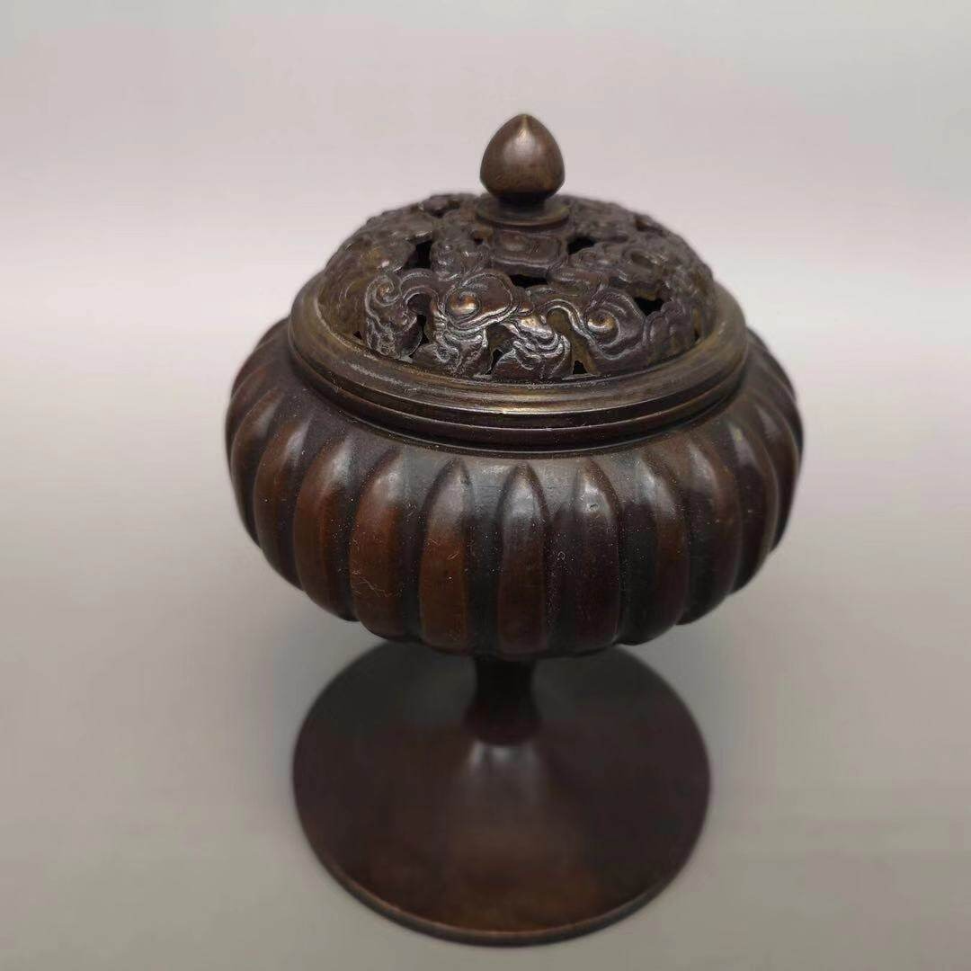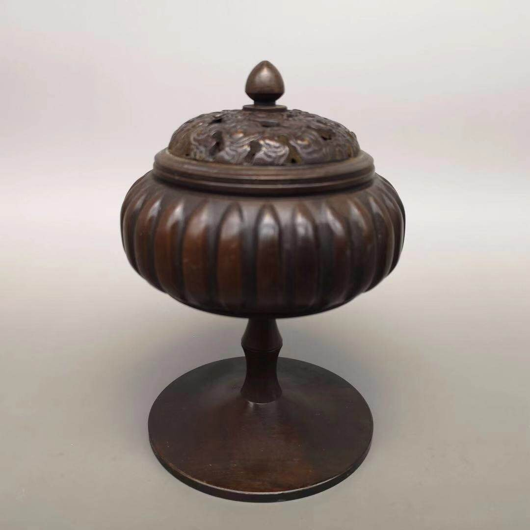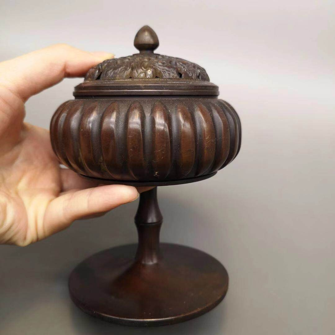仿古盤香檀凈化空氣茶道薰香薰爐居家客廳擺件 純銅南瓜香爐家用