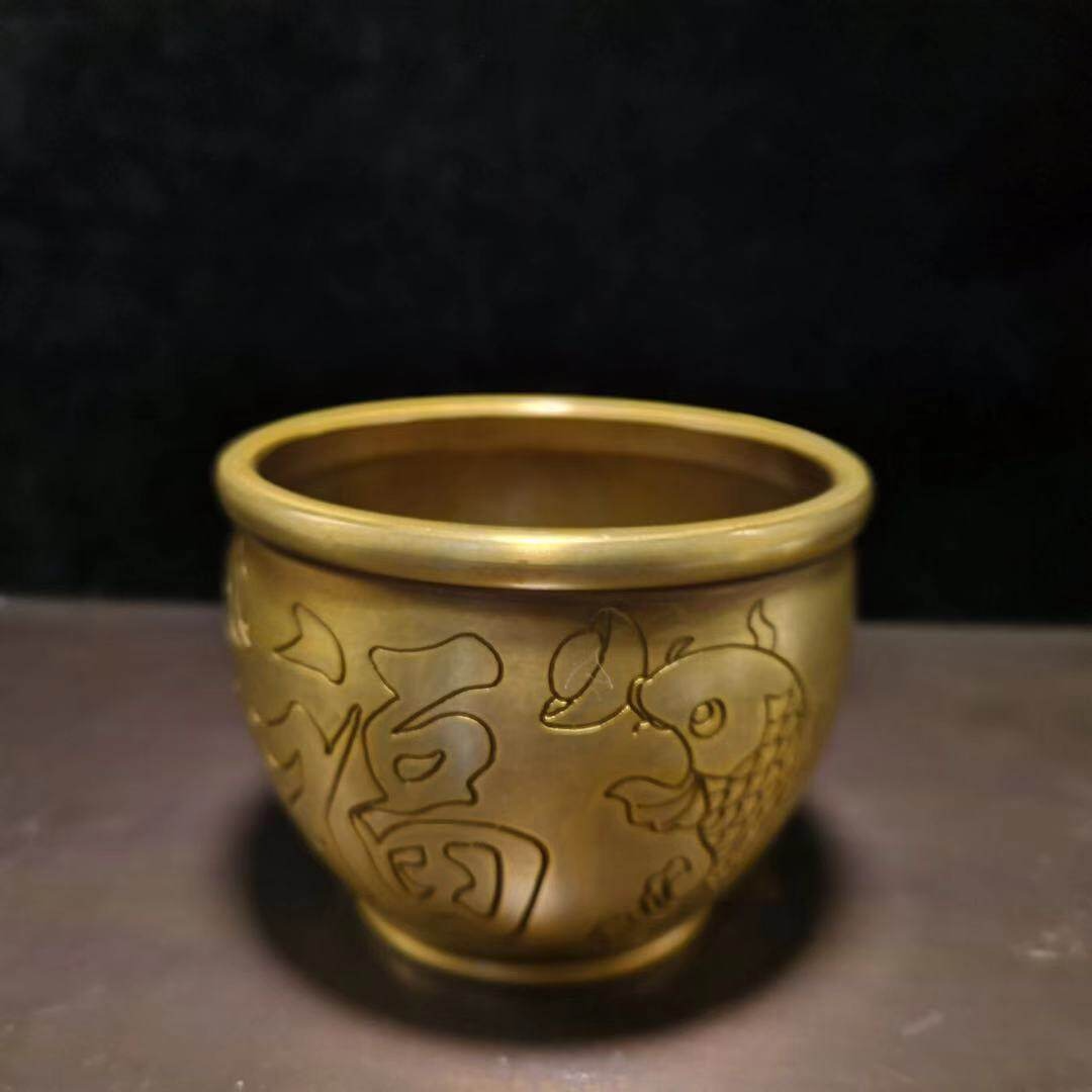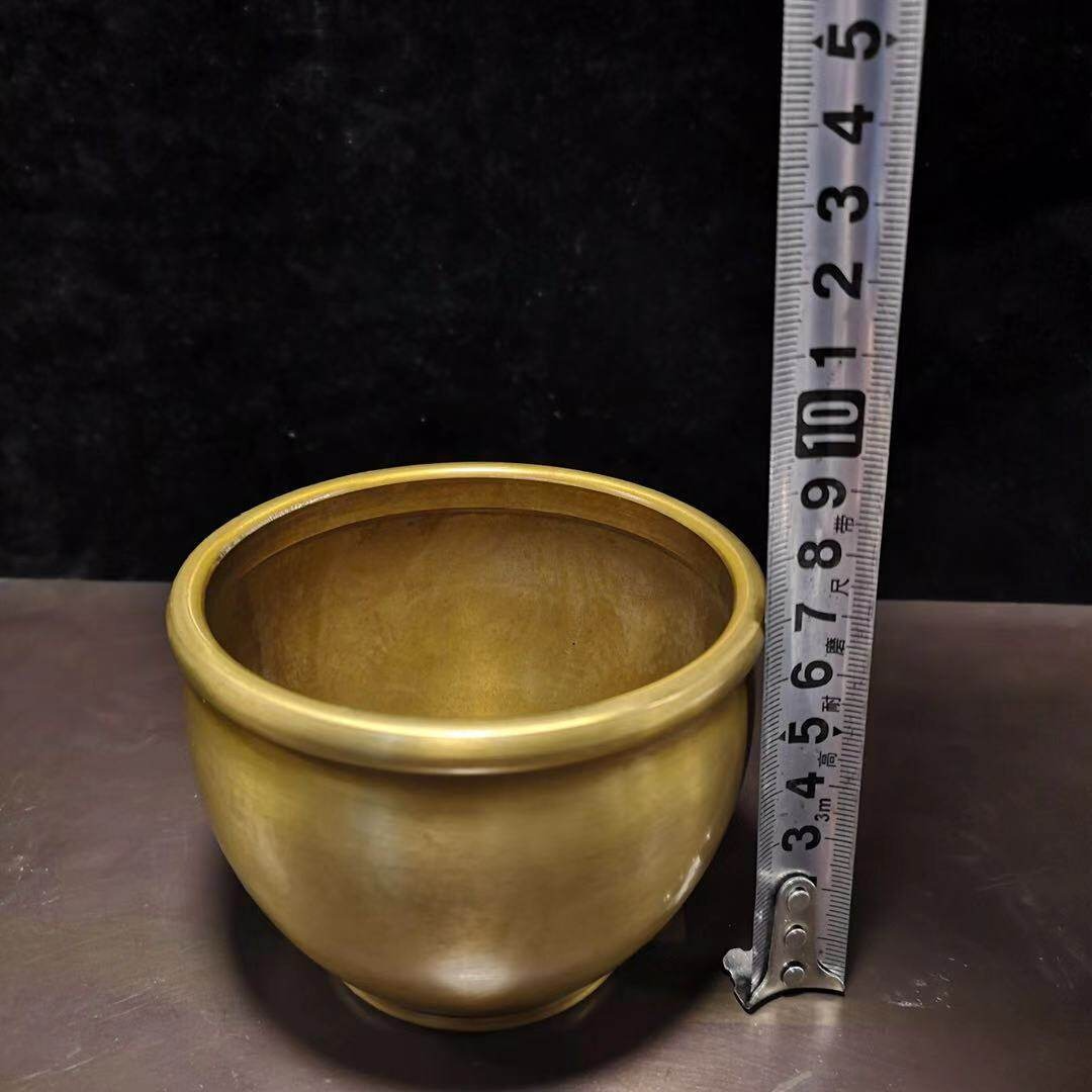 仿古純銅招財納福擺件聚財罐小缸香爐煙灰缸家居裝飾禮品古玩裝飾
