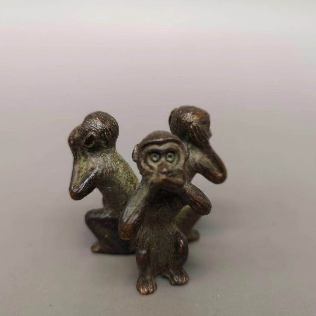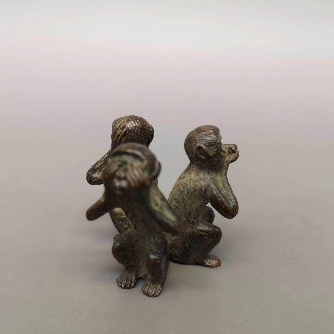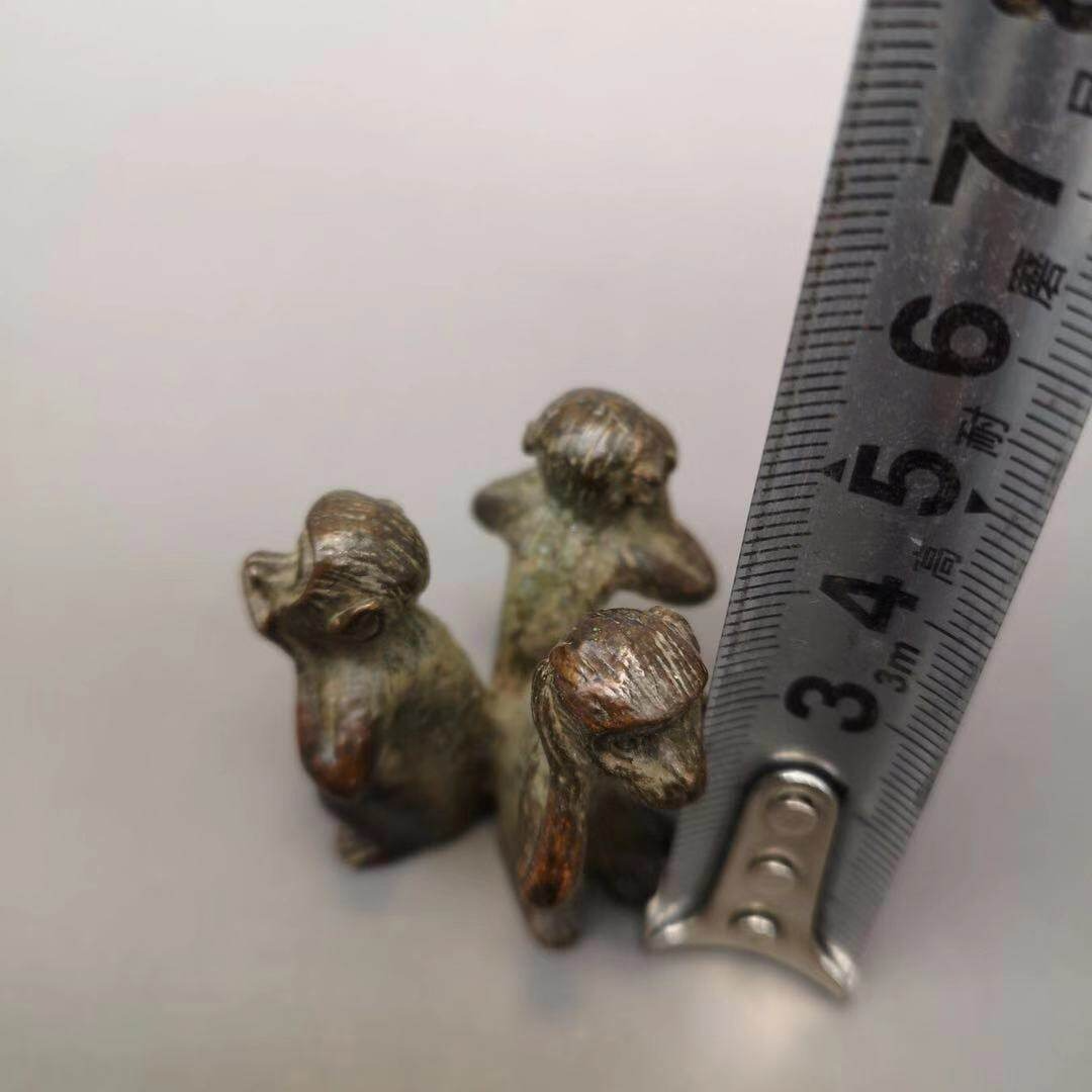 仿古三不猴銅擺件不看不聽不說純銅猴子文玩手把件書房桌面擺件