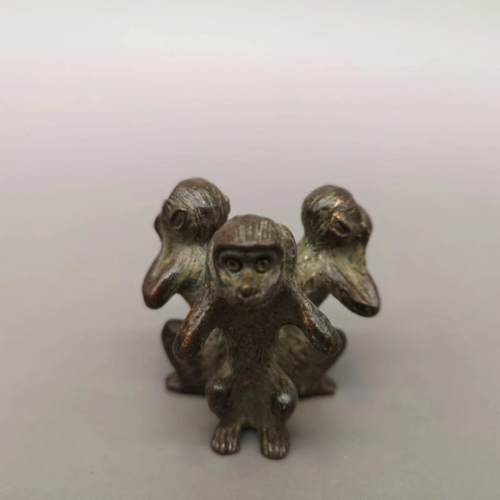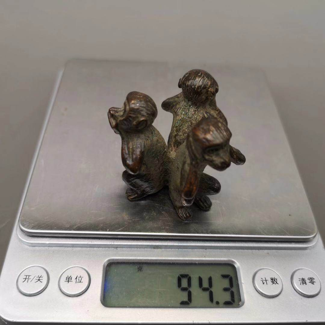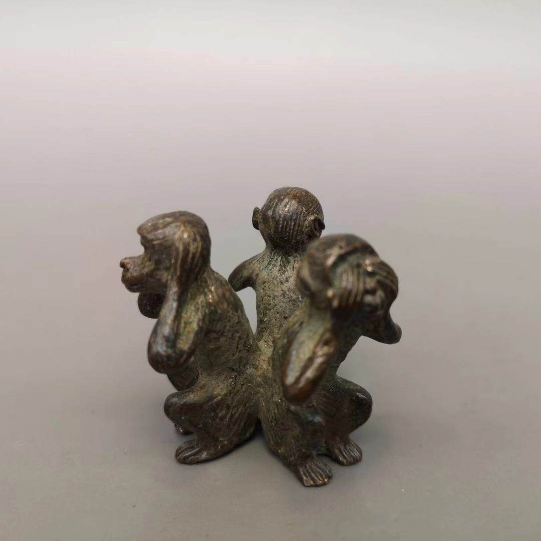仿古三不猴銅擺件不看不聽不說純銅猴子文玩手把件書房桌面擺件