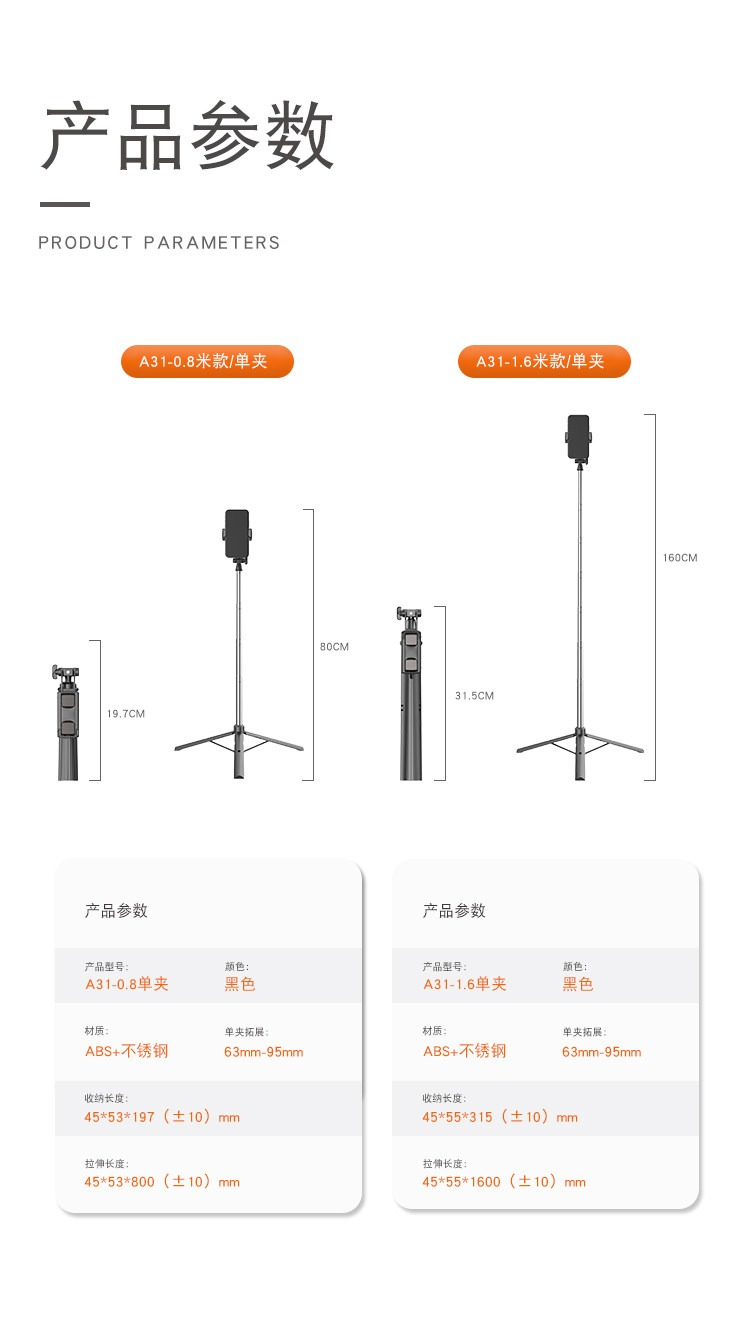 • 單機位直播支架-80㎝(帶遙控器)