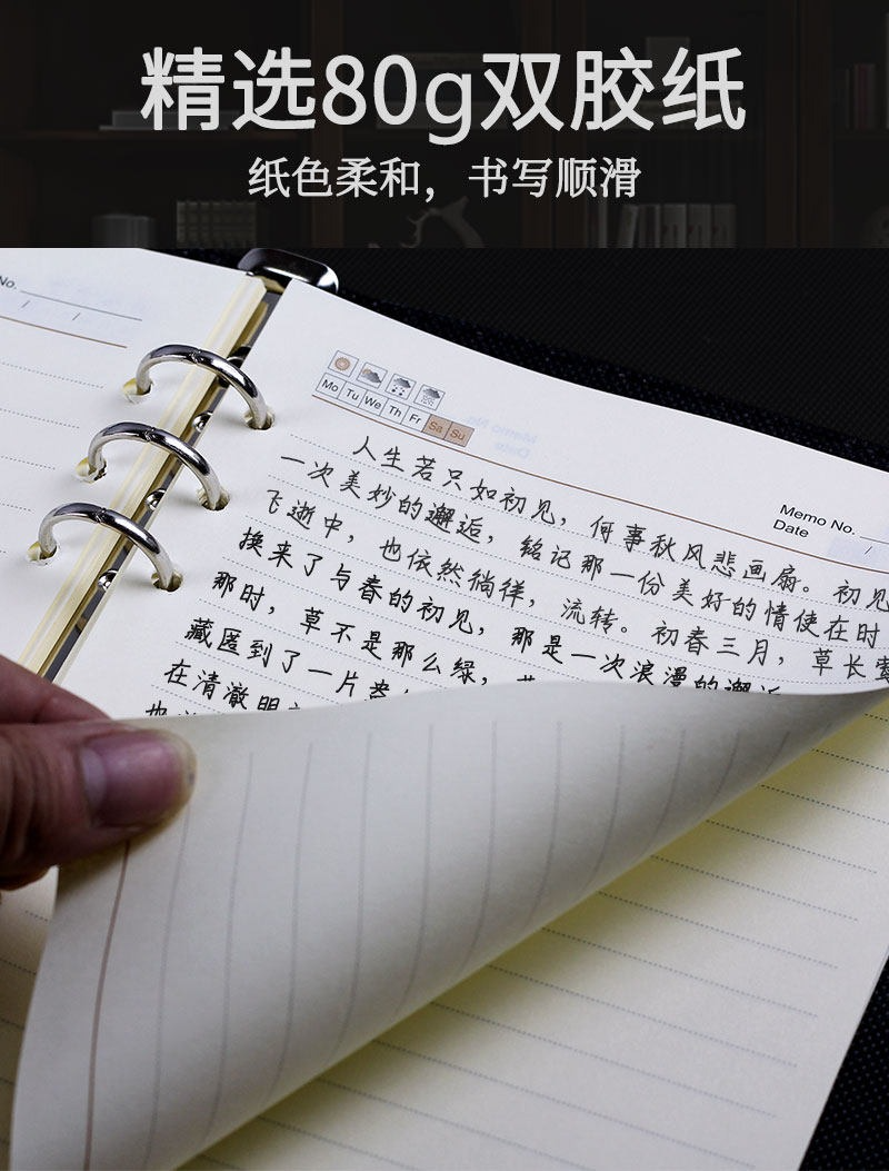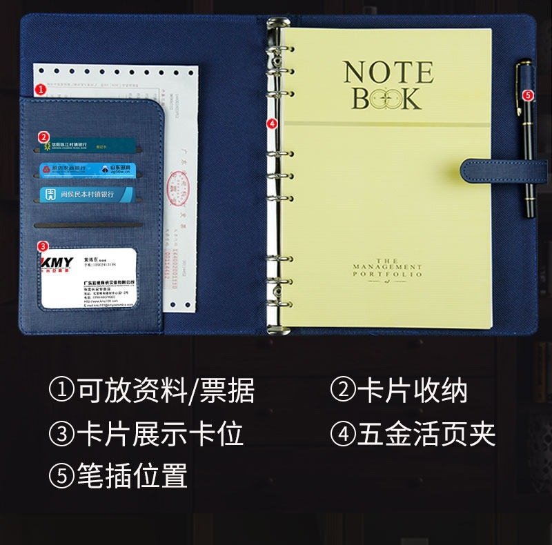 B5 A5皮面活頁本筆記本子可換替芯軟皮插口帶插筆記事本定製LOGO
