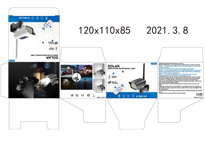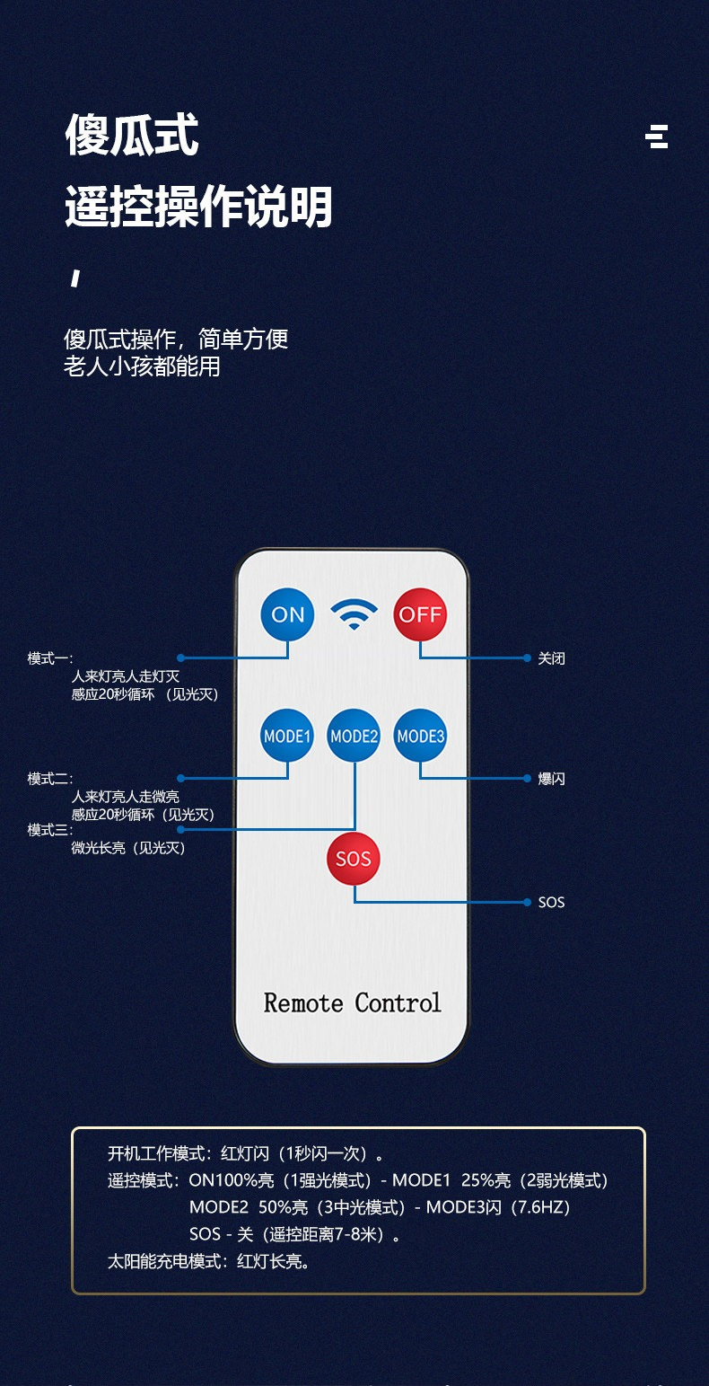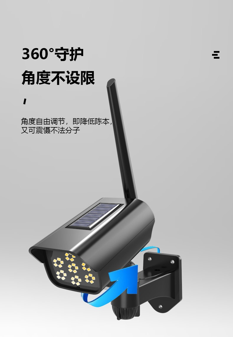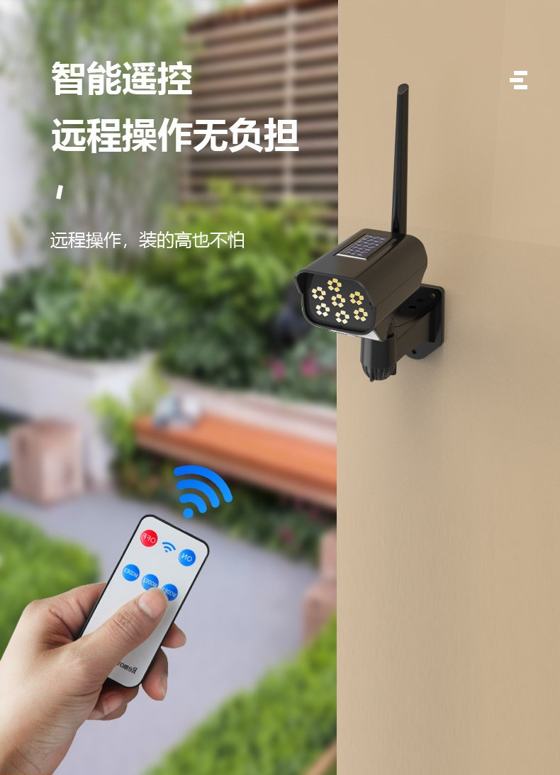• 【特惠款】仿監控100W-黑色遙控款【人體感應+光控+人走微亮】
