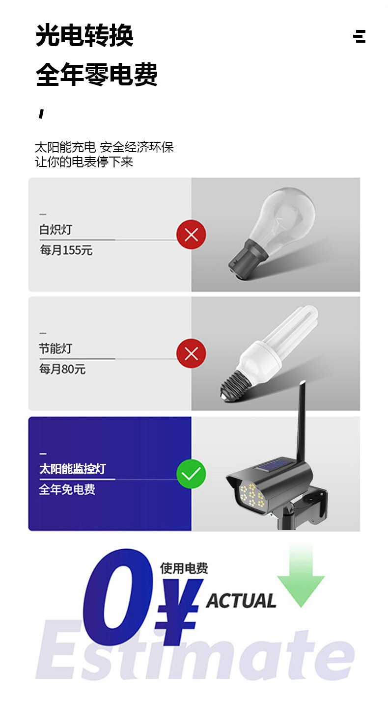 • 【特惠款】仿監控200W-白色感應款【人體感應+光控+人走微亮】