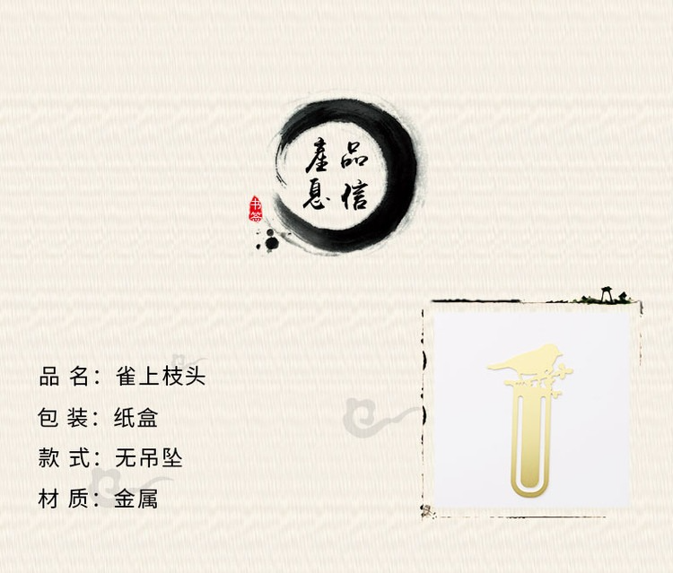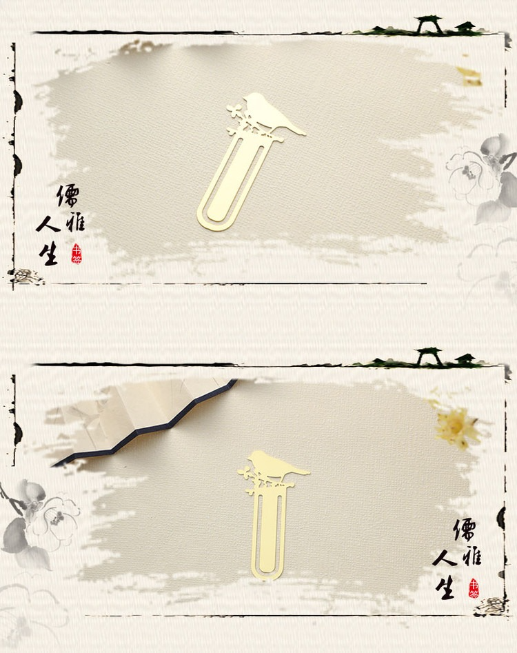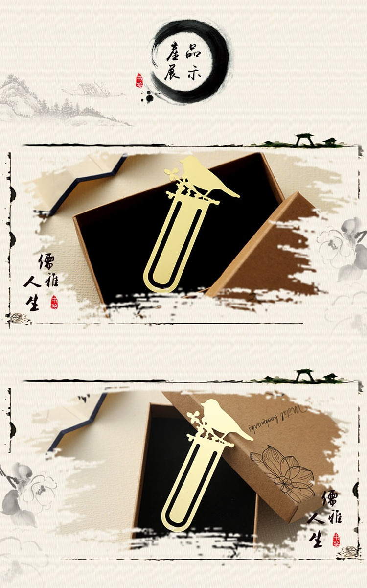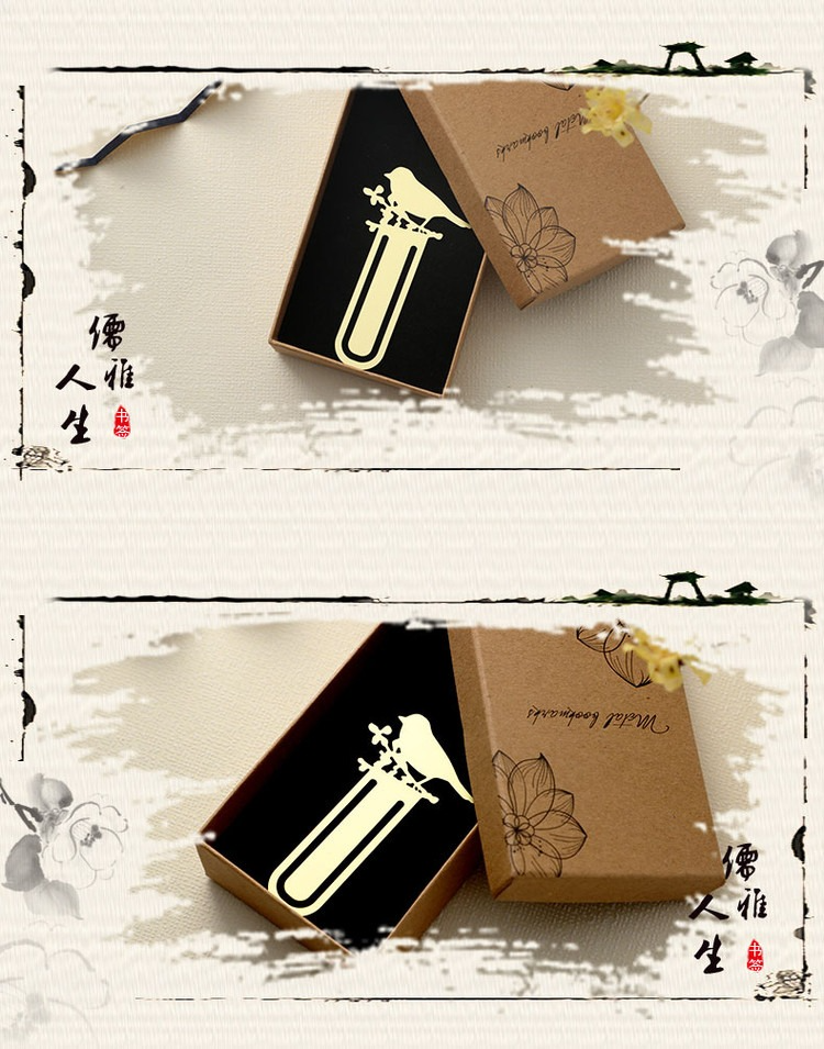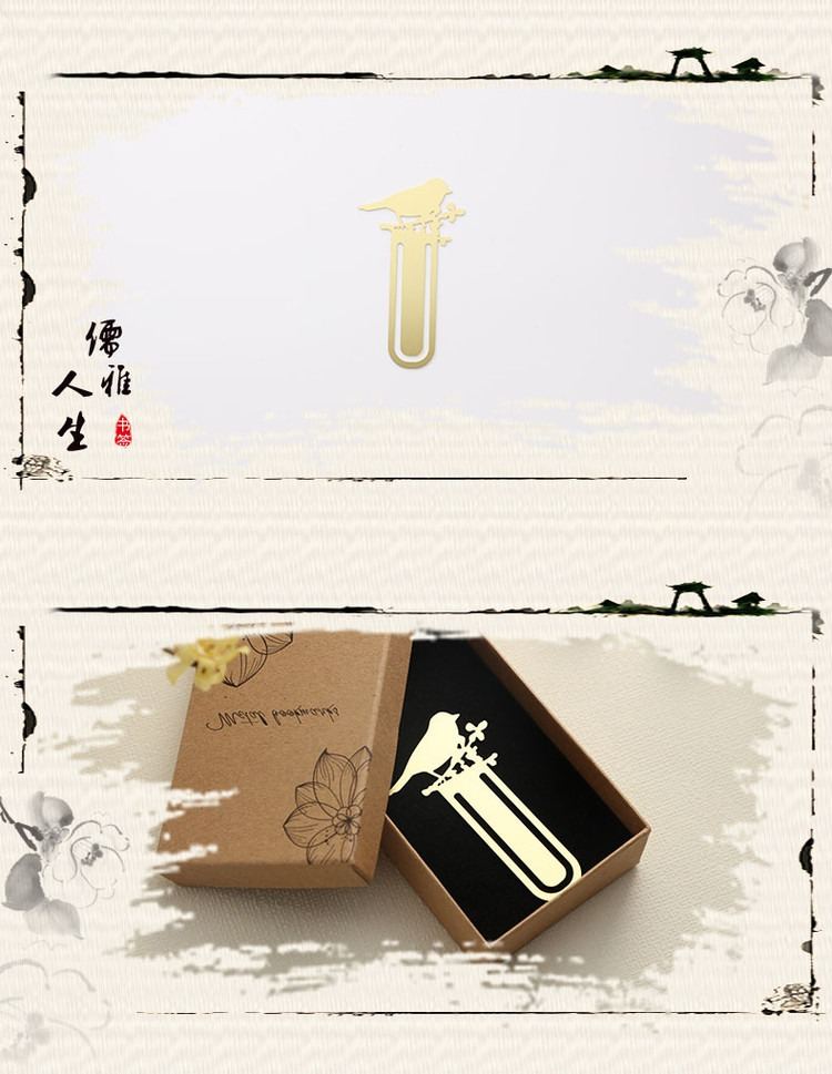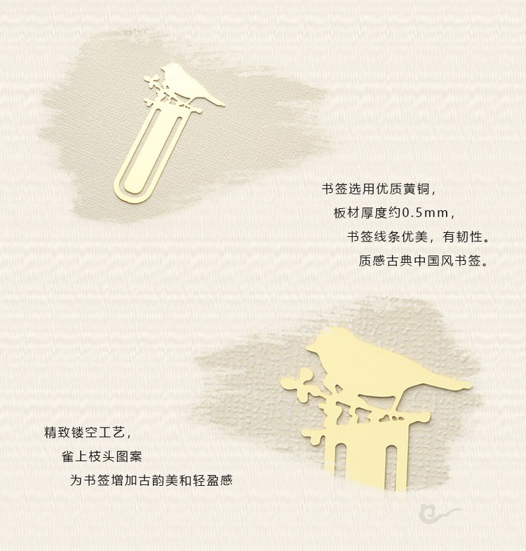 【雀上枝頭】黃銅金屬書簽創意小清新學生用古風文具禮品刻字定製