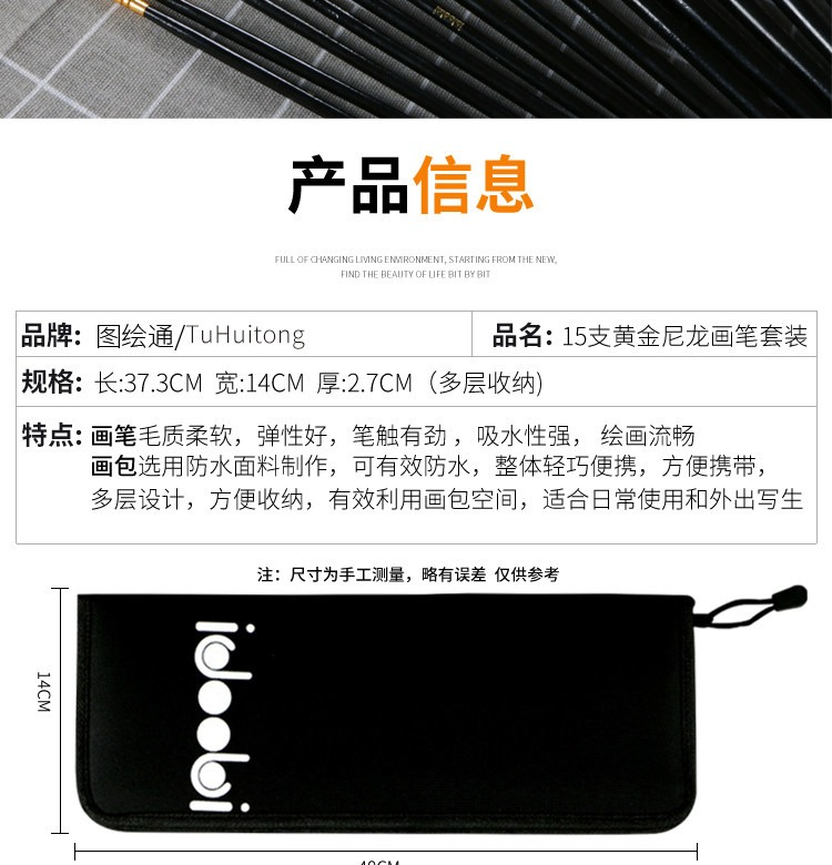圖繪通油畫筆高檔帆布包套裝專業美術高考水粉水彩丙烯尼龍毛油畫框畫筆15支帶包油畫筆畫室練習繪畫套裝