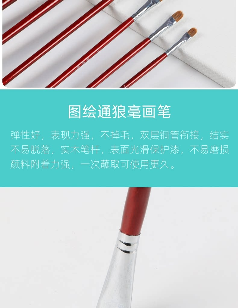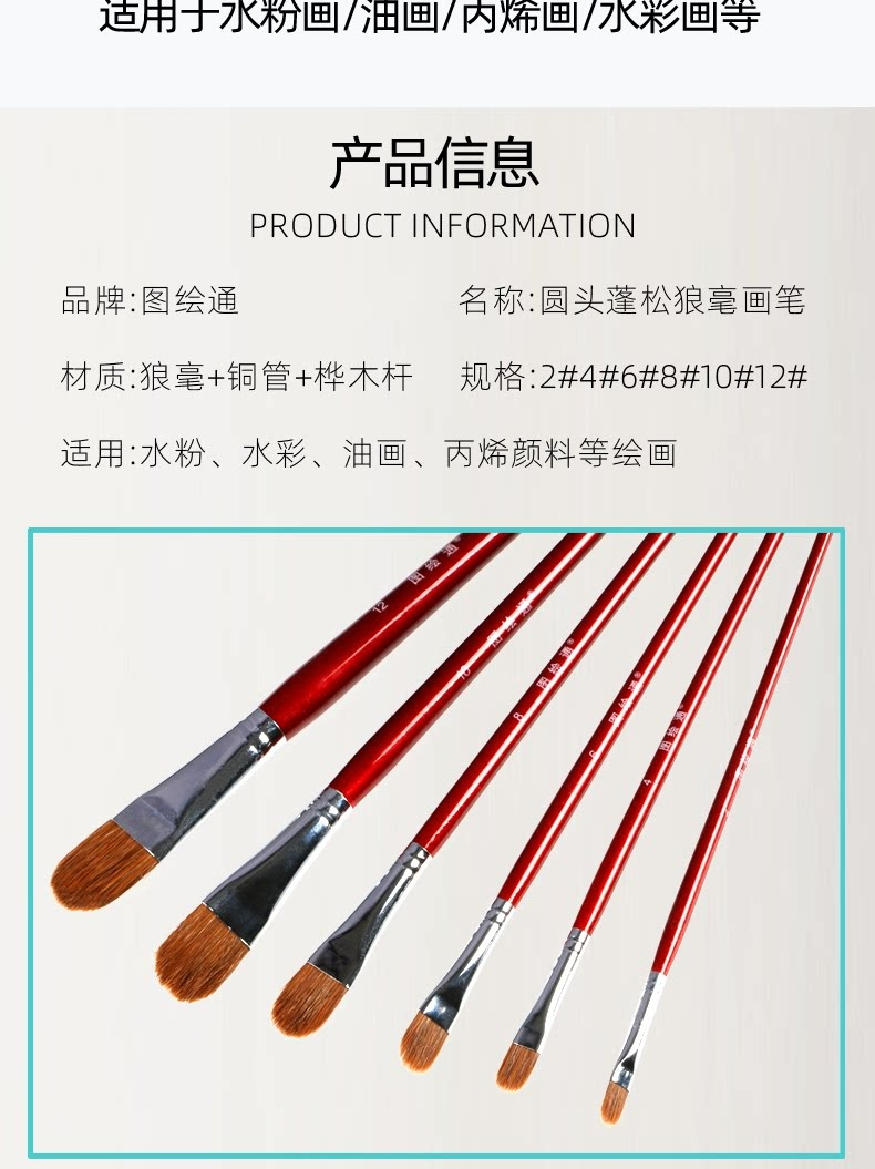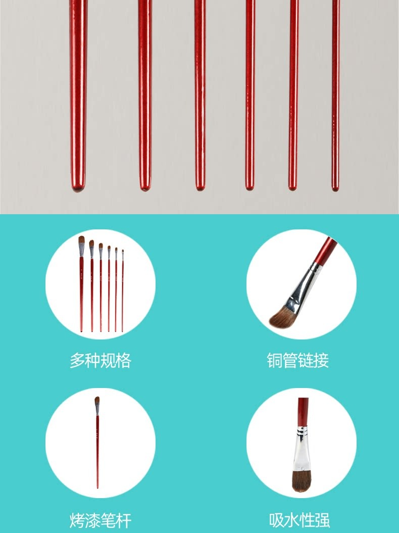 • 狼毫畫筆套裝(2+4+6+8+10+12)號