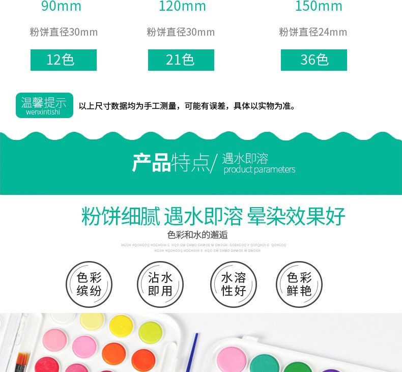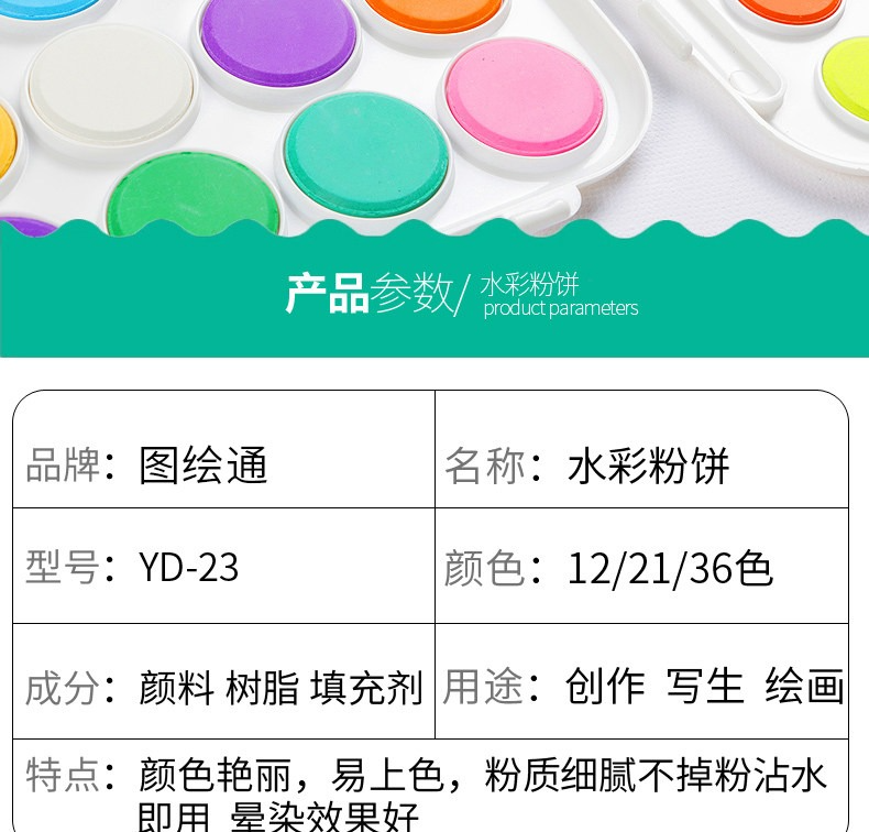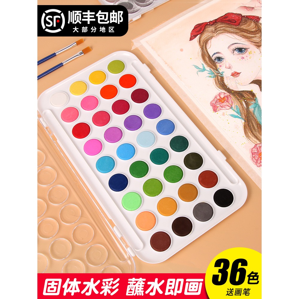 圖繪通水彩顏料粉餅固體顏料小學生美術用品畫寫生繪畫幼兒園兒童繪畫手繪環保初學者12色21色36套裝