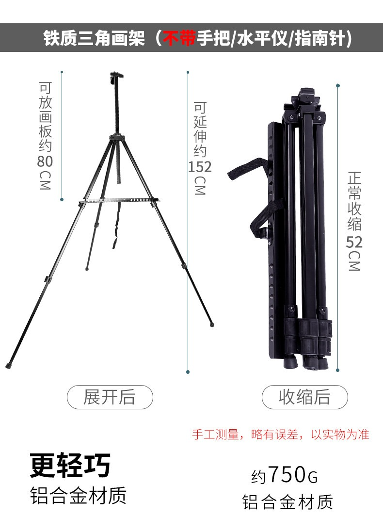 • 黑色鐵三角畫架+4K畫板【送8K素描紙20張+畫架包+4個夾子】