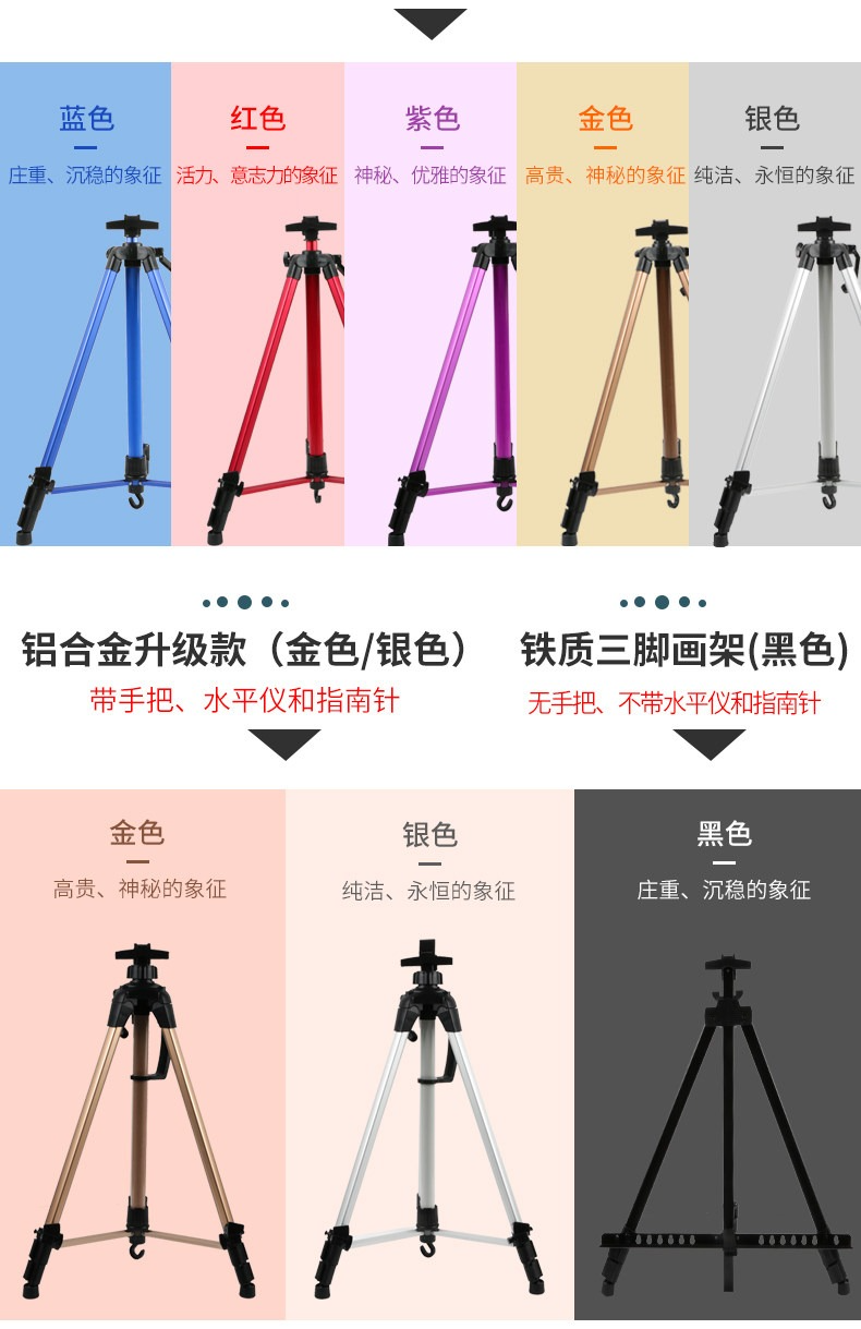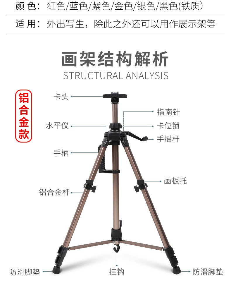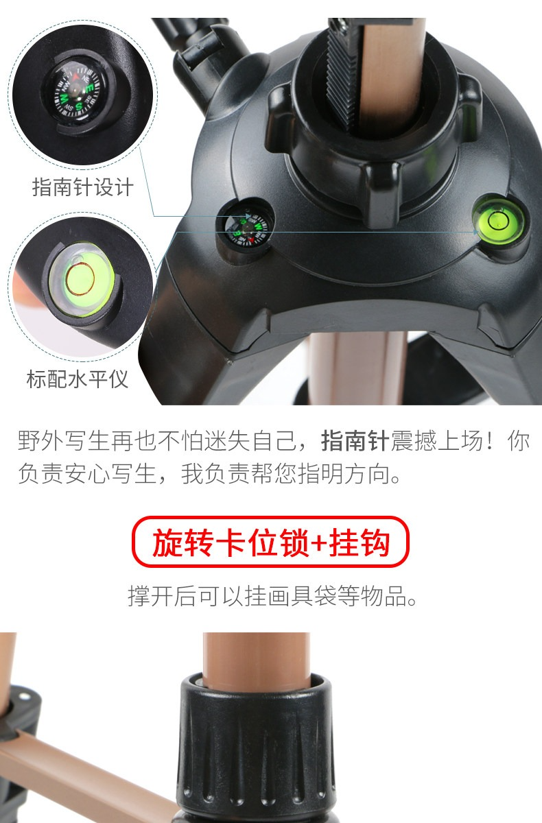 • 升級款金色手搖畫架(帶水平儀 指南針)【送畫架包】