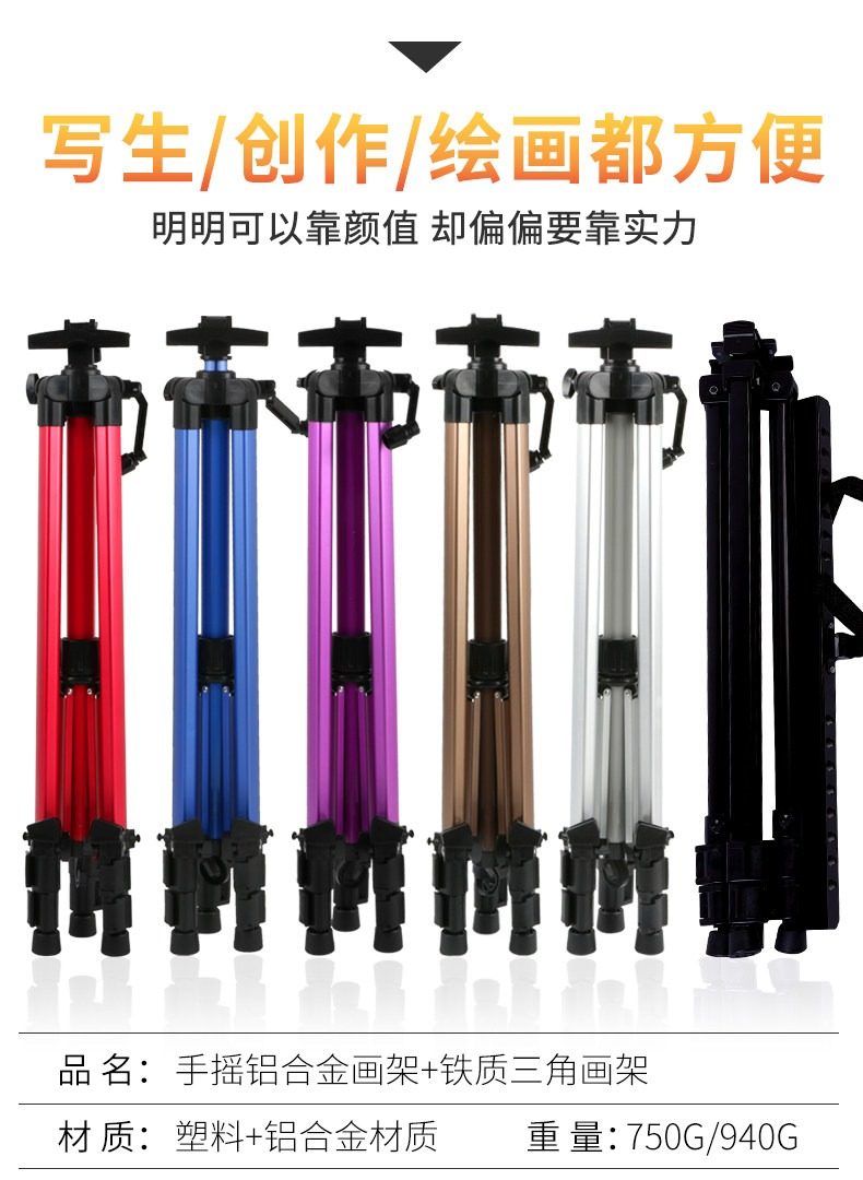 圖繪通鋁合金畫架畫板大手搖小手搖伸縮可折疊多功能便攜繪畫素描寫生支架畫板套裝美術展架學生成人三角架