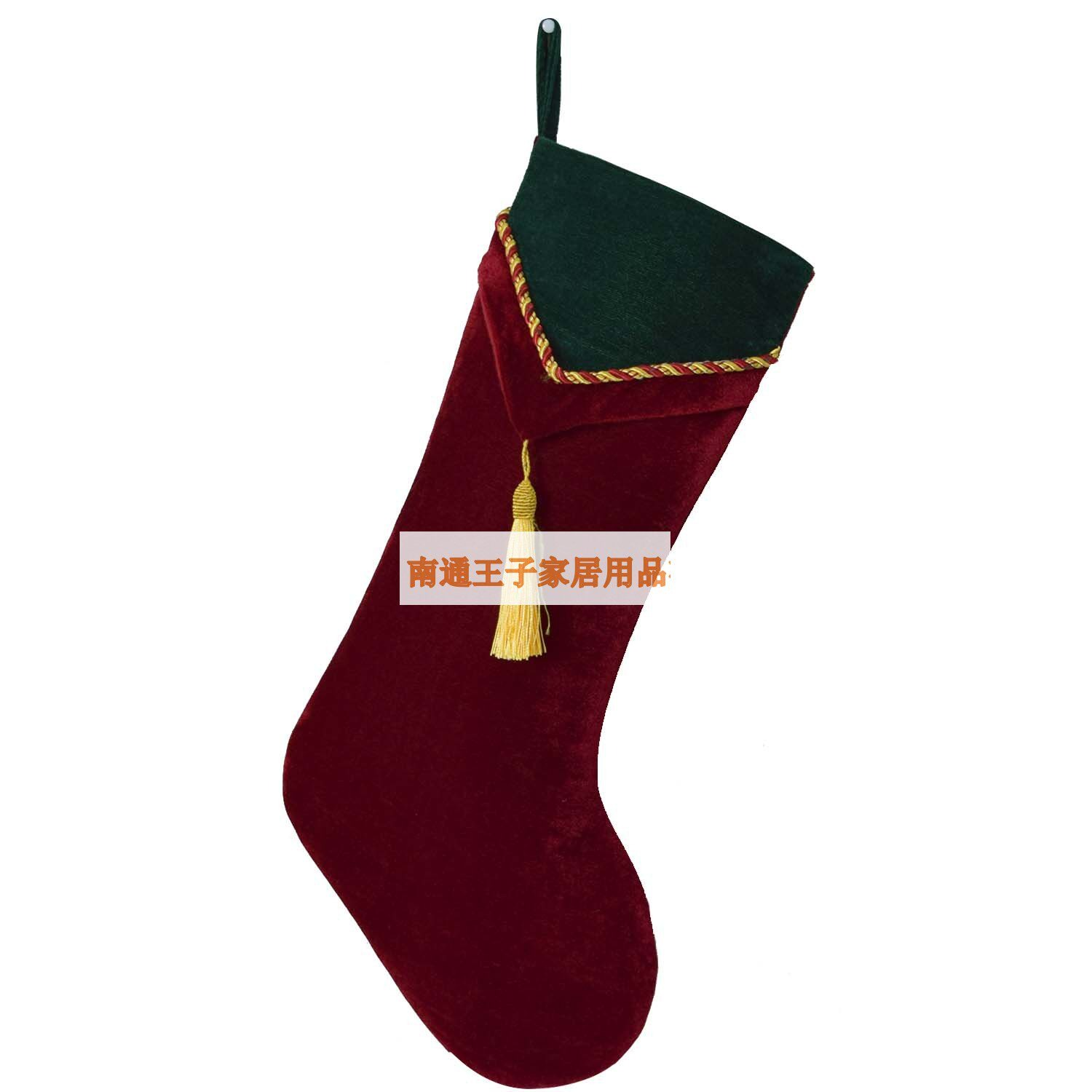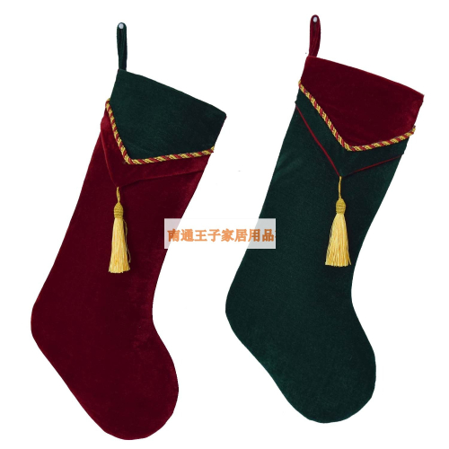 索蘭朵經典紅綠色天鵝絨聖誕襪子流蘇裝飾襪子禮物袋聖誕樹裝飾品
