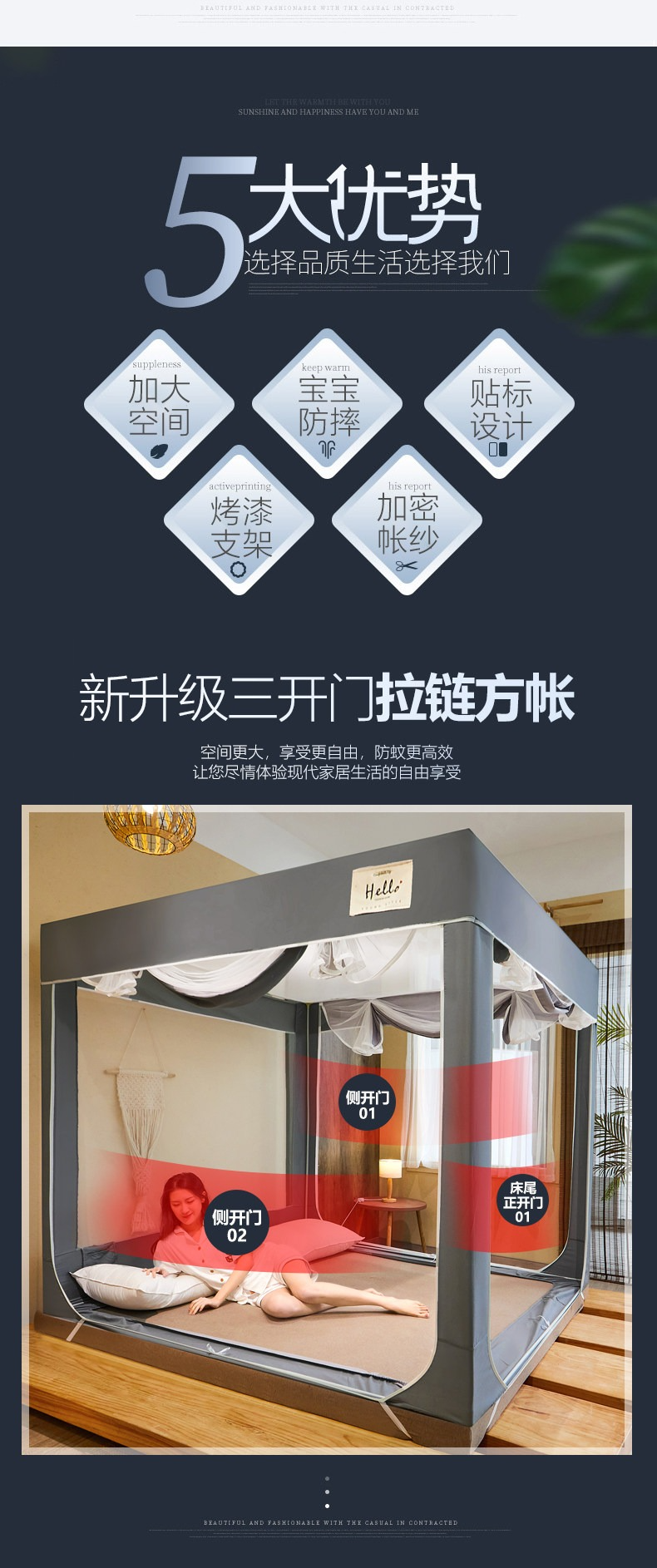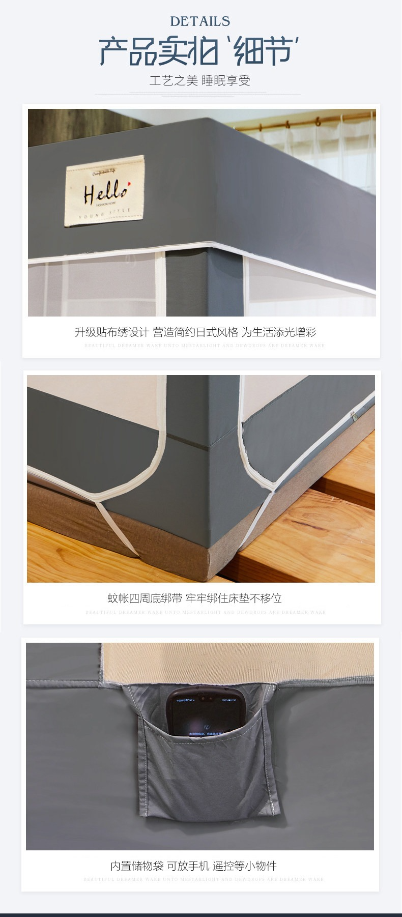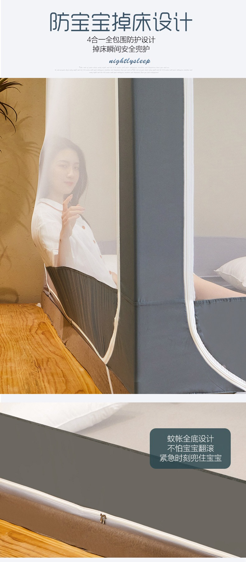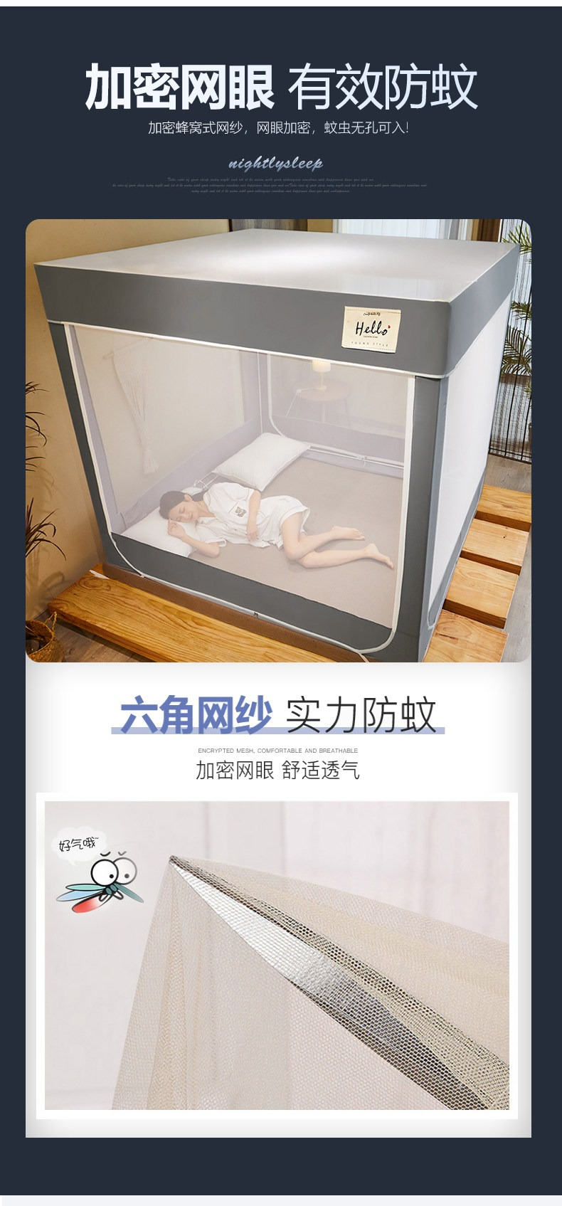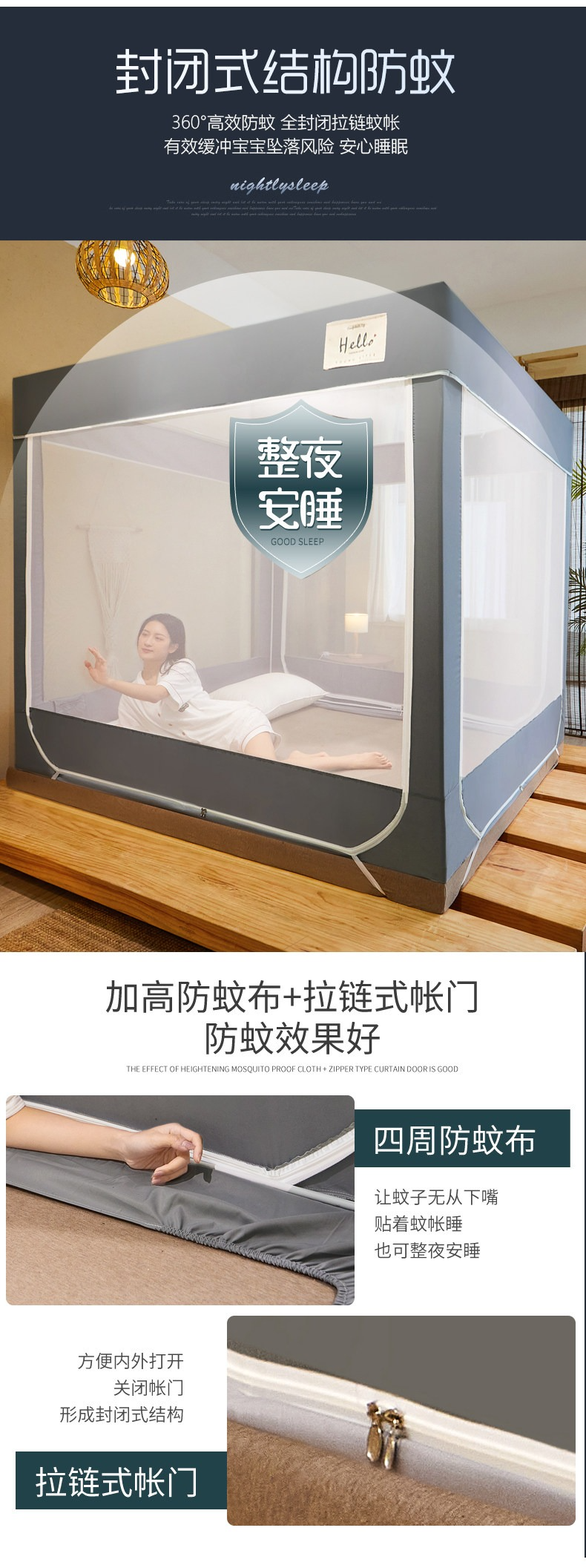 南極人蚊帳家用蒙古包加粗支架固定加厚防摔兒童1.8m牀寶寶密紋帳