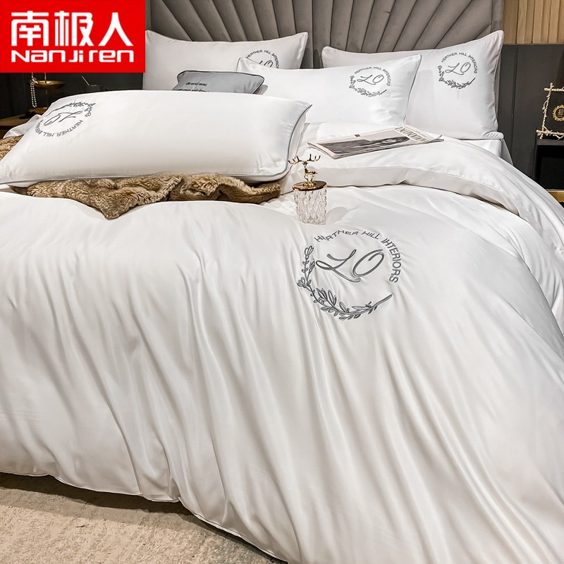 南極人水洗真絲四件套裸睡北歐輕奢牀上用品冬季被套牀單四季通用