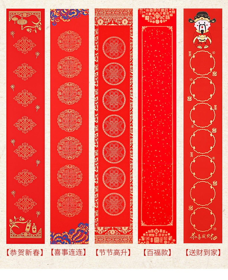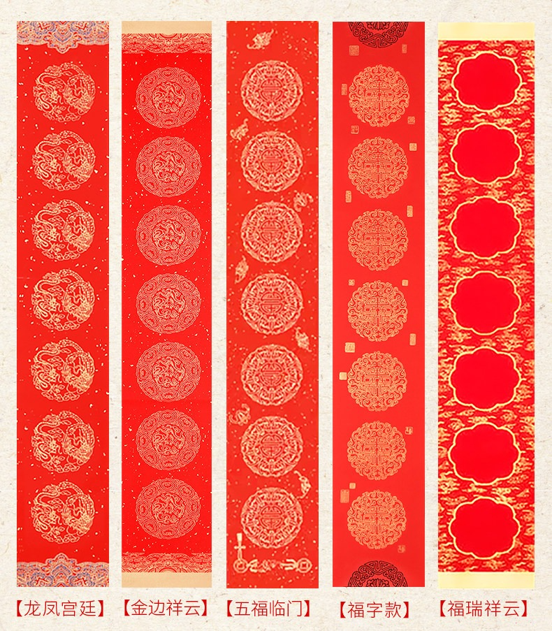 • 【福瑞祥云】七言-買2送1-17*104cm-5副/包【適合單門/臥室門】