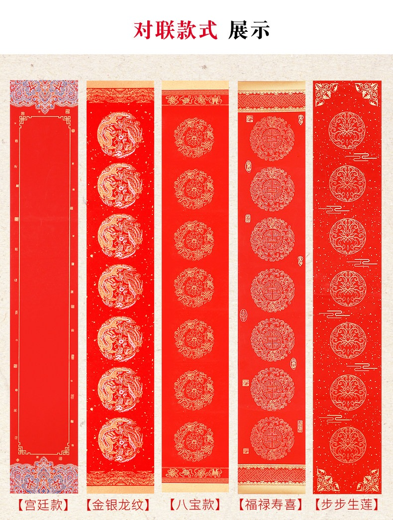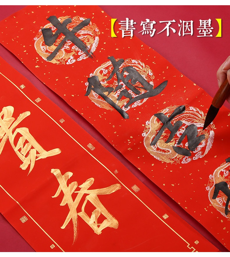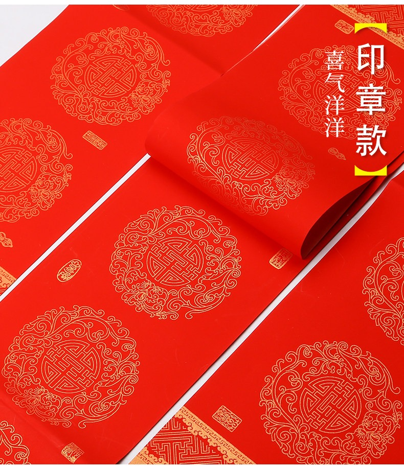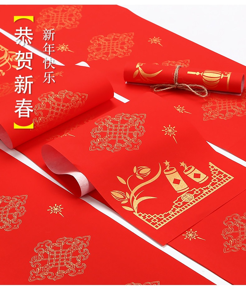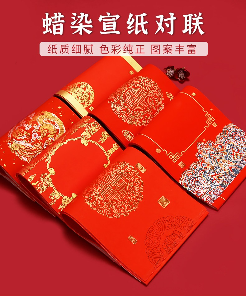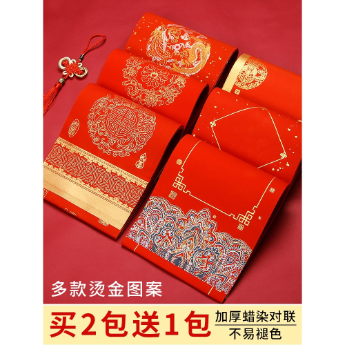 燃燈2022年國潮對聯紙蠟染春聯紙空白手寫萬年紅宣紙半生熟高檔燙金加厚七言瓦當福字新年紅紙批發定製