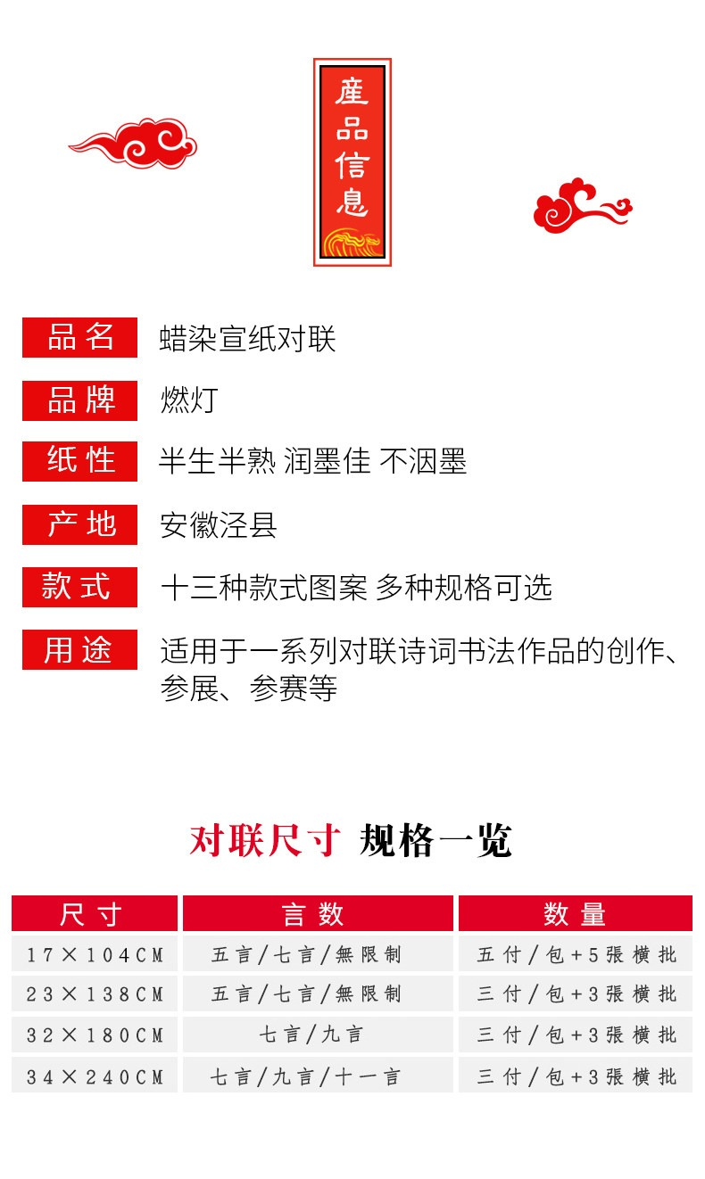 • 【特價試用,不參與贈送】七言【瑞氣祥云】-17*104cm-5副/包【適合單門/臥室門】