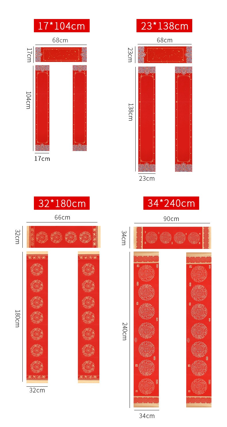 • 【福字款】五言-買2送1-34*240cm-3副/包【適合大號雙門,庭院門】