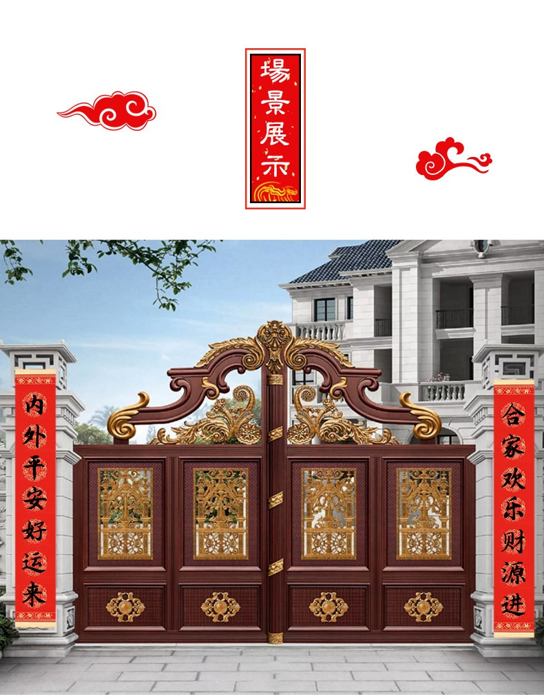 • 【福瑞祥云】七言-買2送1-34*240cm-3副/包【適合大號雙門,庭院門】