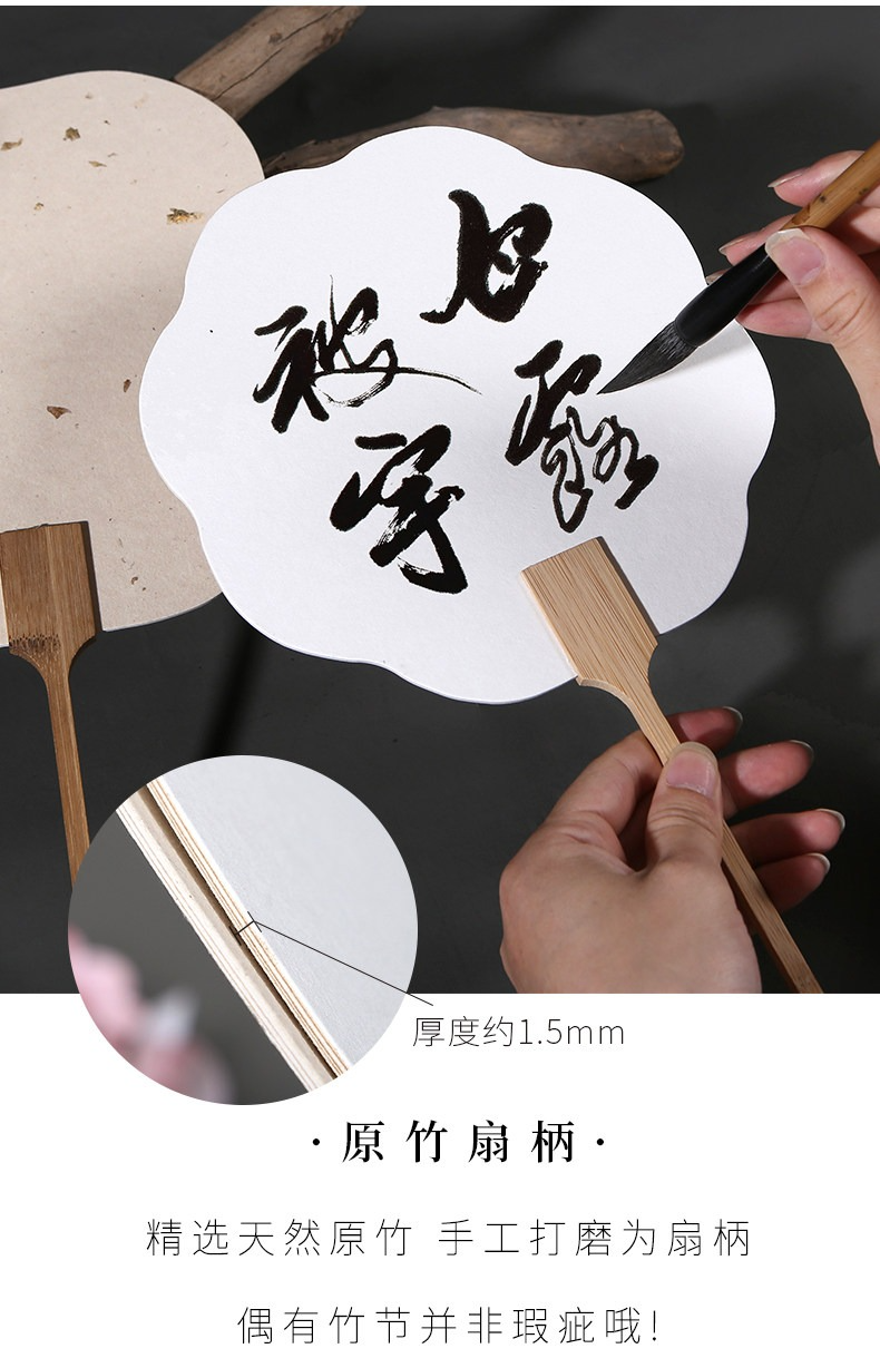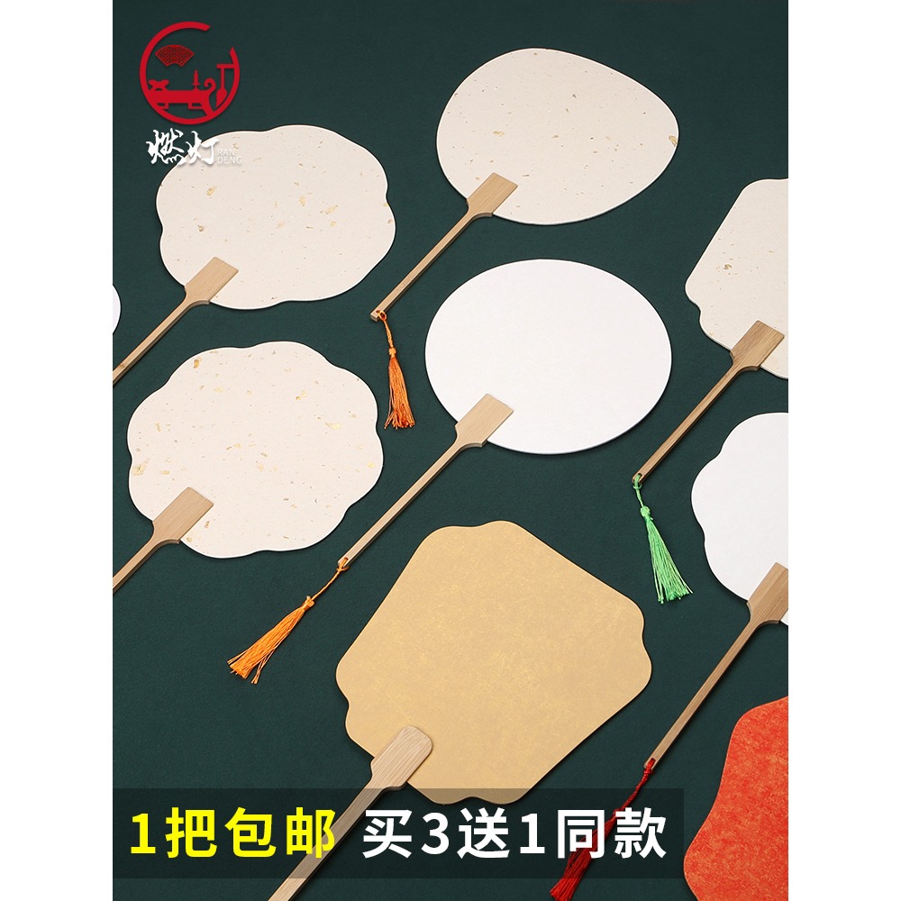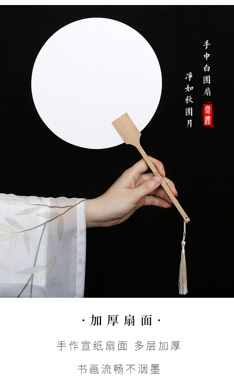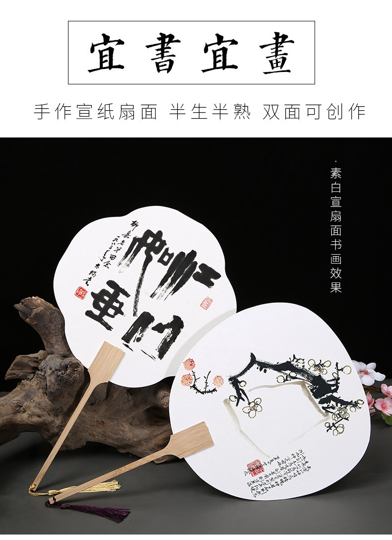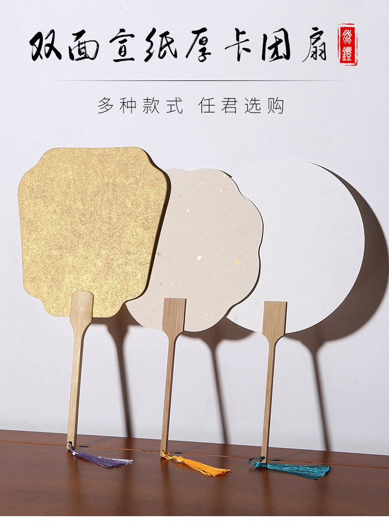 加厚雙面宣紙團扇空白紙扇半生熟白色卡紙扇面手繪畫扇子兒童diy