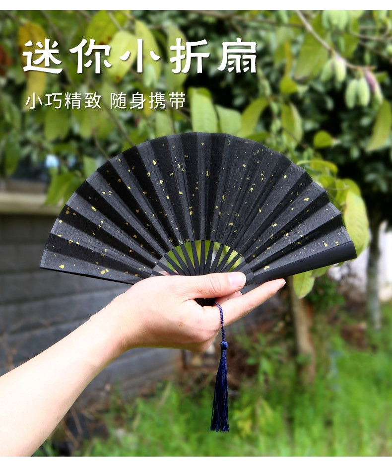 • 5寸絹布-黑灑金【仿烏木扇骨】