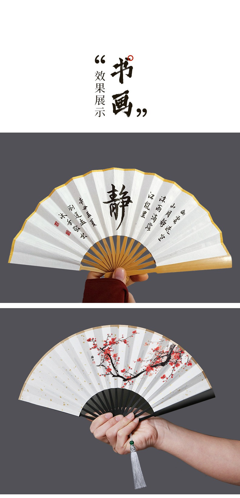 • 定制題字款:4-6寸彩色扇面-仿烏木【備注款式和內容】