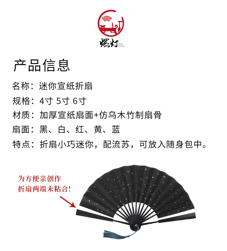 • 4寸宣紙-黑灑金【仿烏木扇骨】粘貼請備注