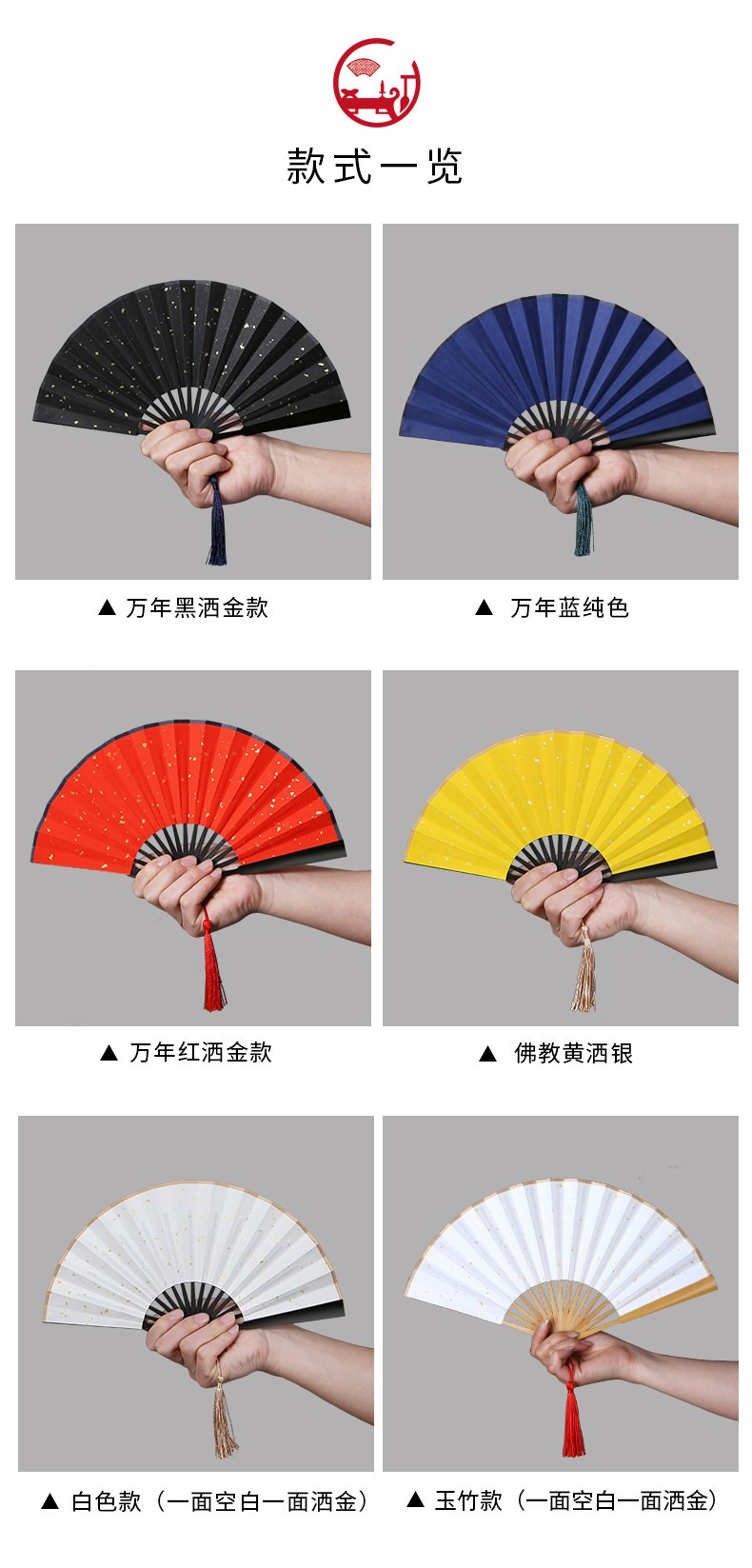 • 6寸宣紙-白灑金【仿烏木扇骨】粘貼請備注