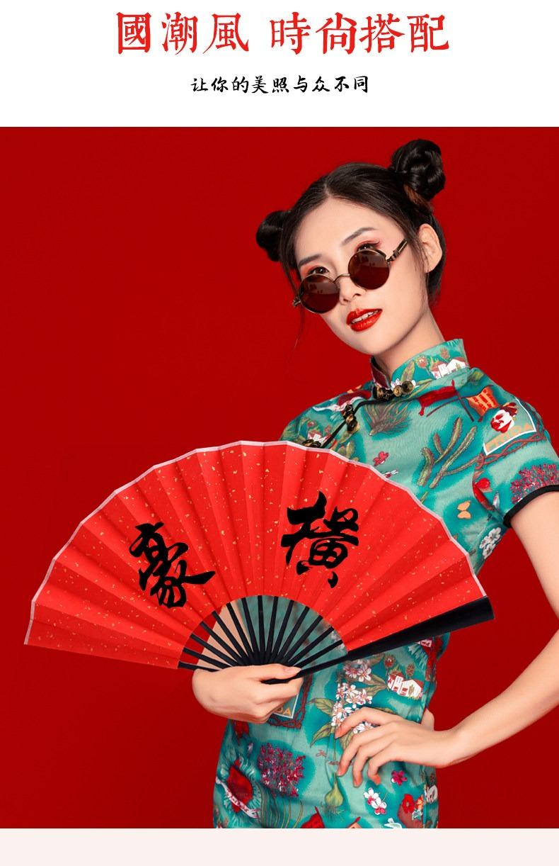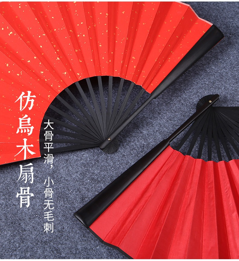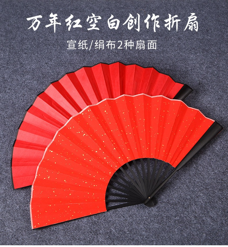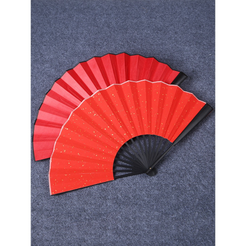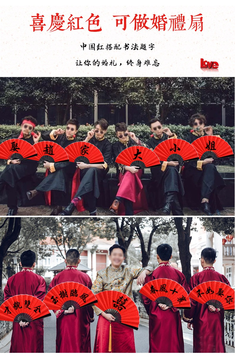 空白萬年紅灑金扇子摺扇紅色中國風新郎伴郎團接親喜扇道具扇定製
