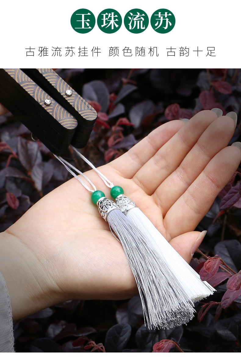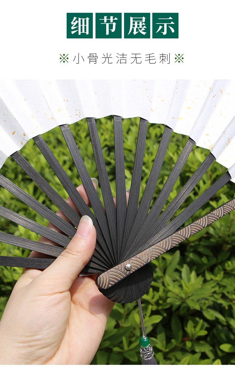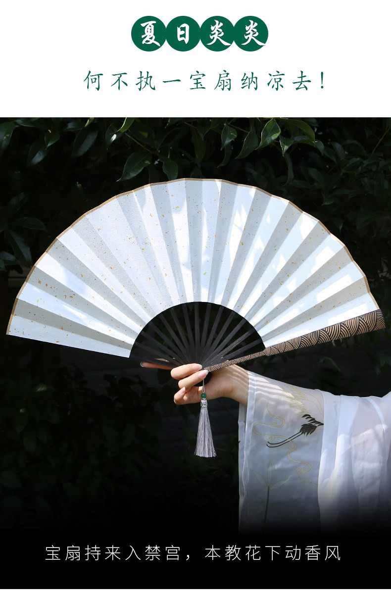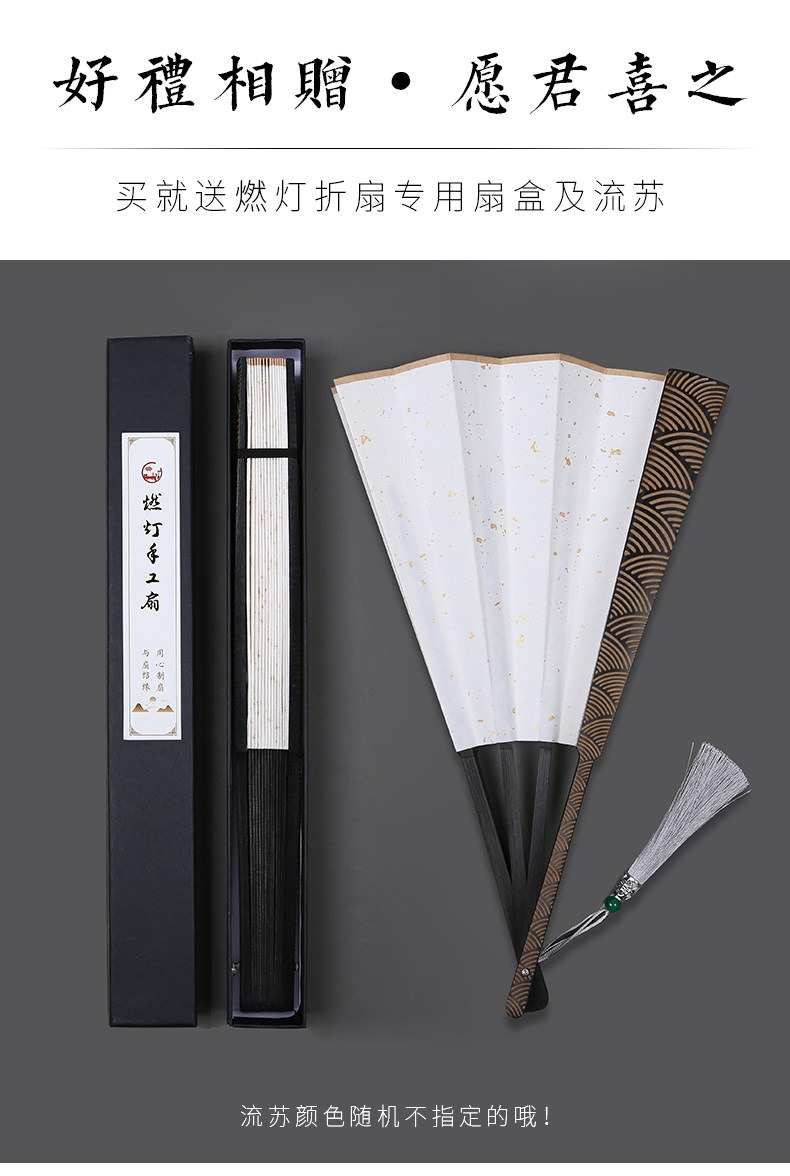 燃燈新品雲紋雕刻扇手工空白灑金絹布宣紙摺扇國潮古風帶流蘇10寸